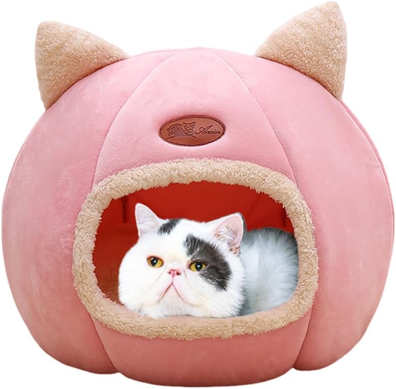 Cat Beds for Indoor Cats, Cozy Cat Cave Bed Dog House Cats Tent with Removable Cushion Pillow, Soft Warm Pet House Puppy Bed, Cute Pet Nest for Kitten Small Dog (Pink, M-13x13x13 Inches)