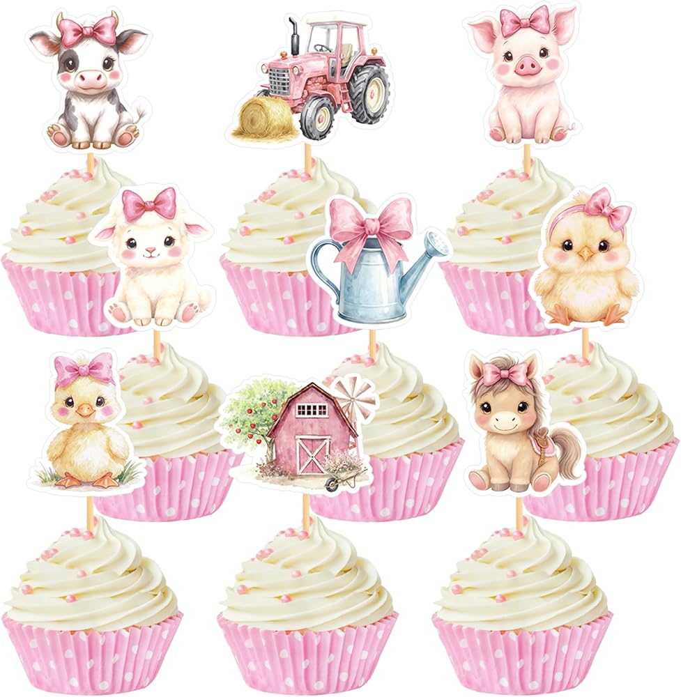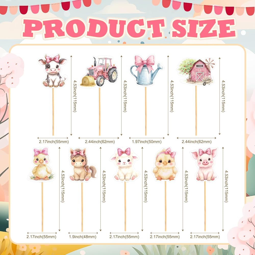 Featuring delicate pink floral accents and cute farm animal illustrations, these toppers create an Instagram-worthy presentation. The coordinated design theme brings visual harmony to your dessert table while serving as charming conversation starters.