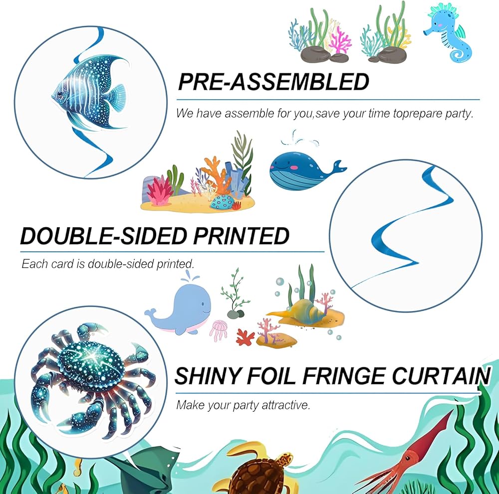 Eye-Catching Design: Featuring adorable ocean creatures like dolphins, crabs, starfish, and jellyfish, these Fish Hanging Swirls Deco add a playful touch to your Sea Ocean Theme Party. The bright colors and cute patterns create a magical underwater vibe.