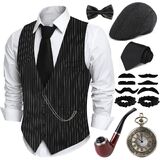 【1920s Men's Costume Accessories】: You will get our 1920s men's accessories package including 1 x men's vest, 1 x Panama/Manhattan newsboy hat, 1 x tie, 1 x bow tie, 1 x vintage pocket watch, 2 x armbands. All of these are items with strong retro elements, very suitable for various retro gentleman looks, making every appearance stand out.