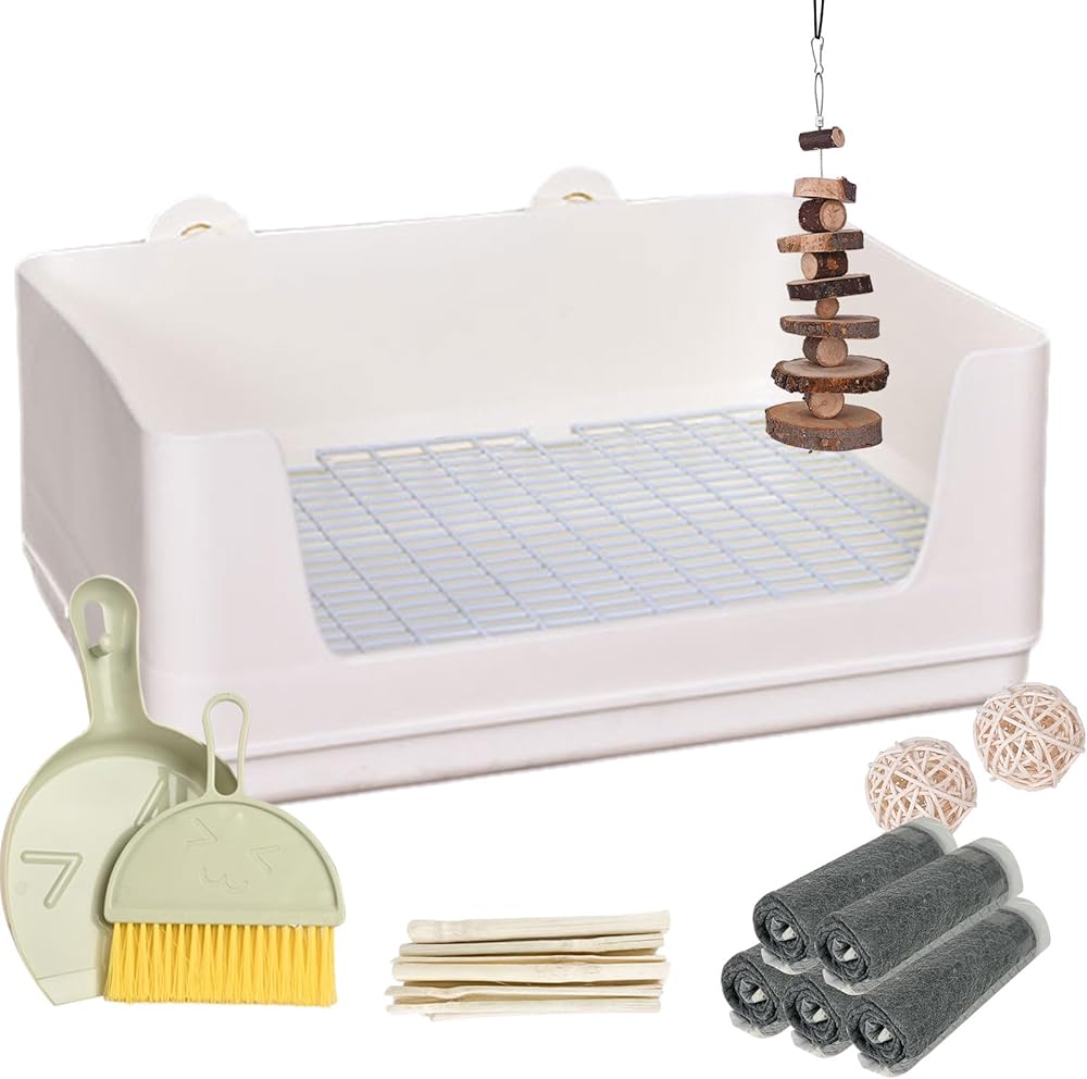 Easy to Clean : Featuring a unique separable design, this bunny litter box allows for effortless cleaning, ensuring that all components can be detached for thorough sanitation while keeping your rabbits' paws clean and free from mess