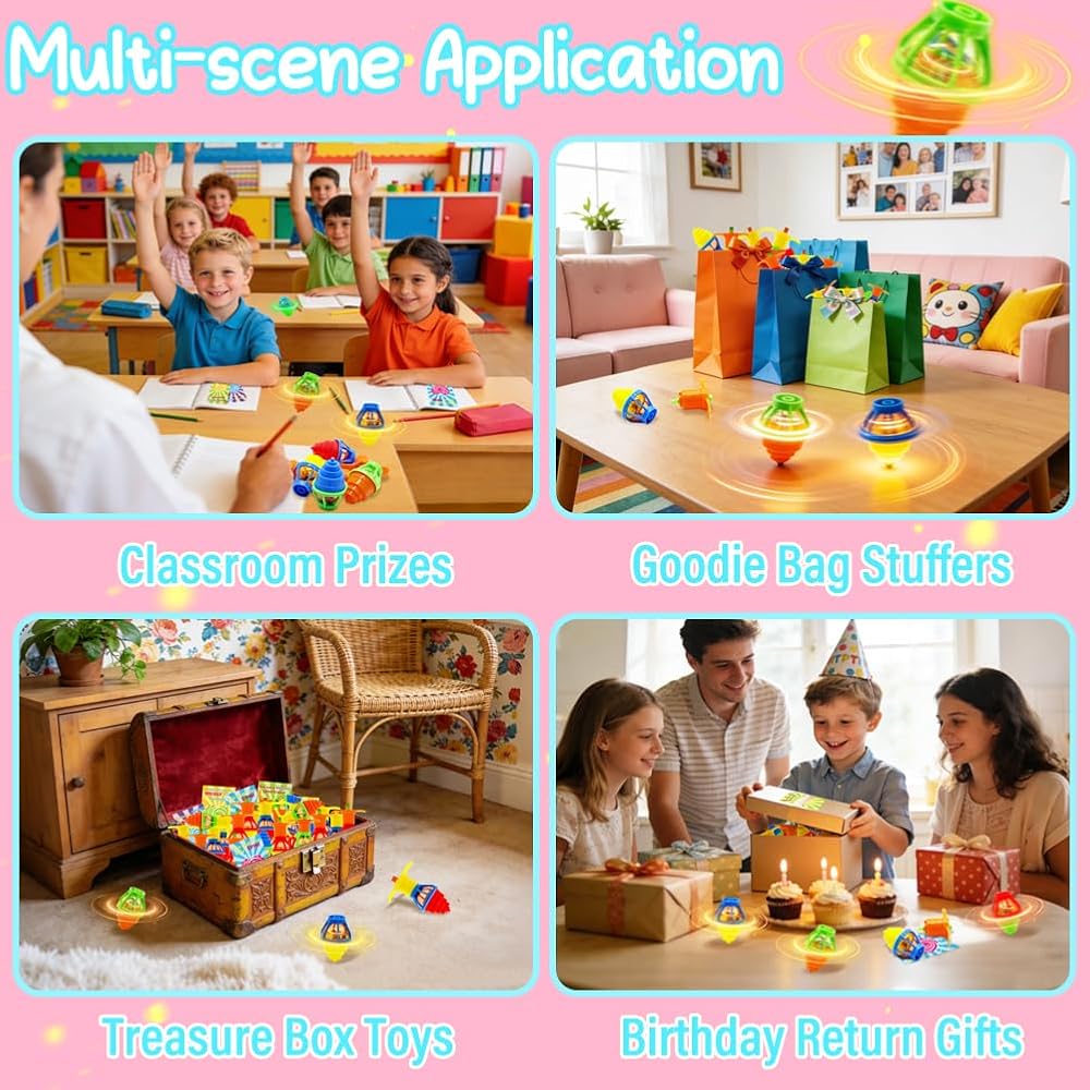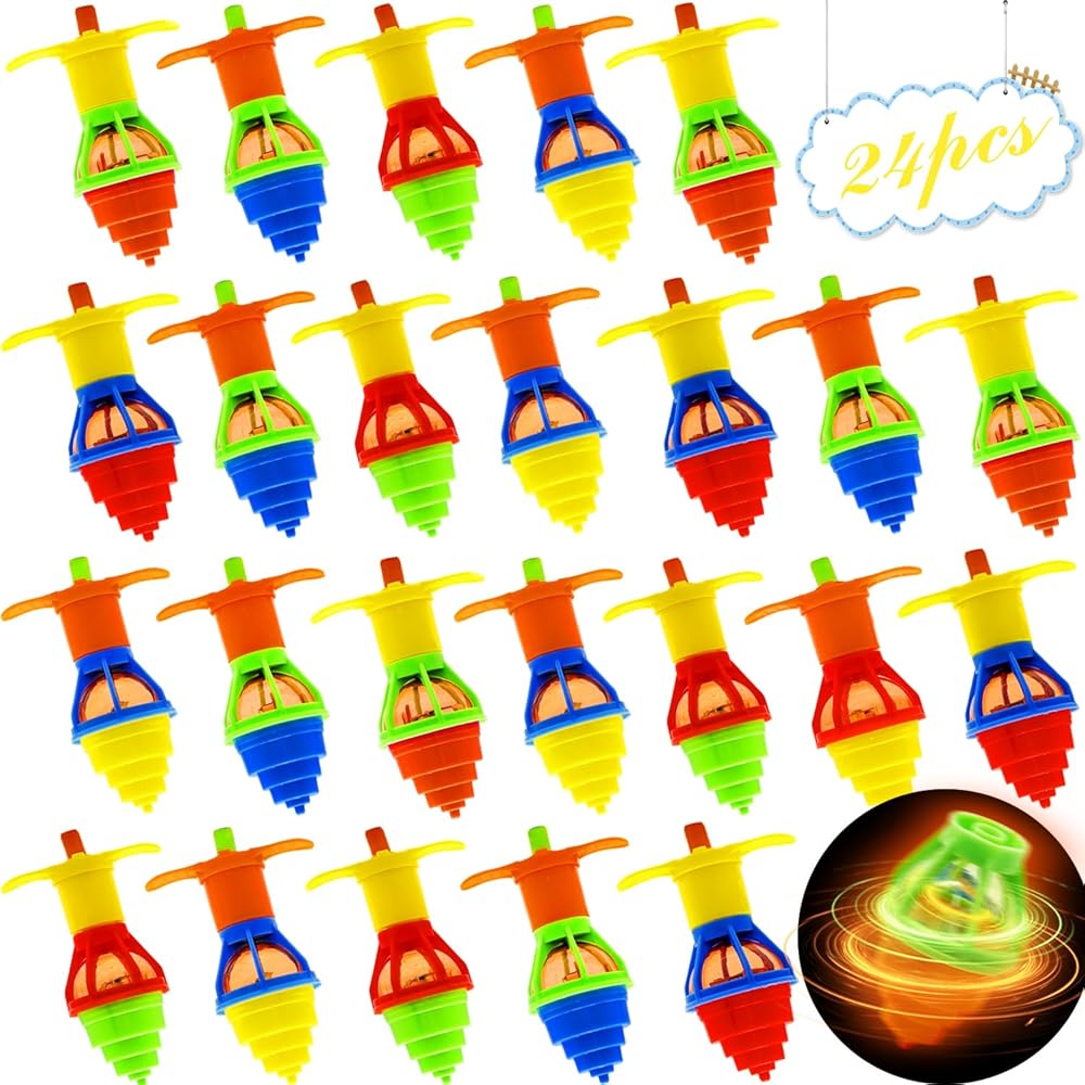 Value Pack & Easy to Carry: Comes with 24 packs of glowing spinning tops in different colors, meeting your sharing and replacement needs; compact size makes it easy to carry in pockets, backpacks, suitable for home, school, park, travel and any occasion.