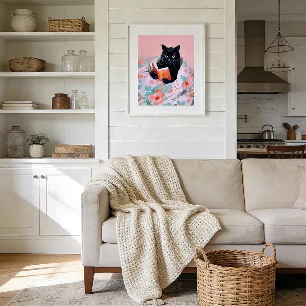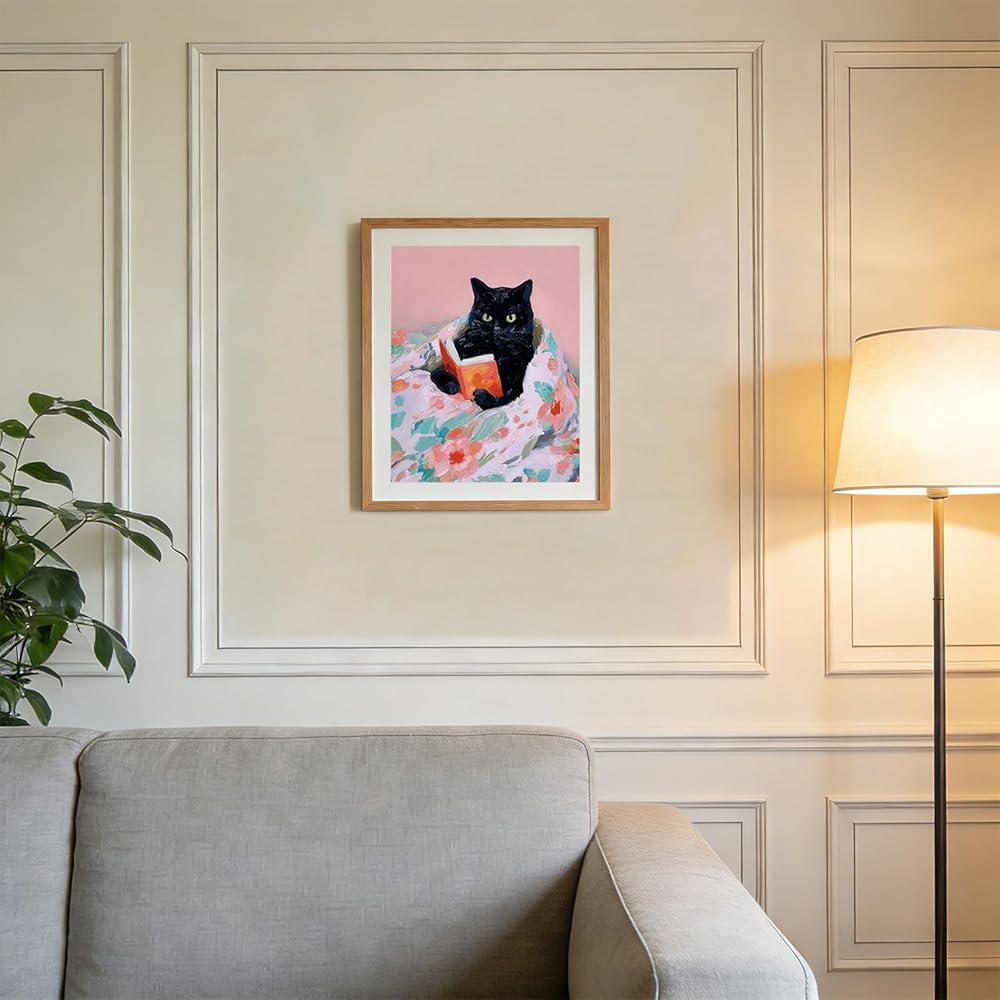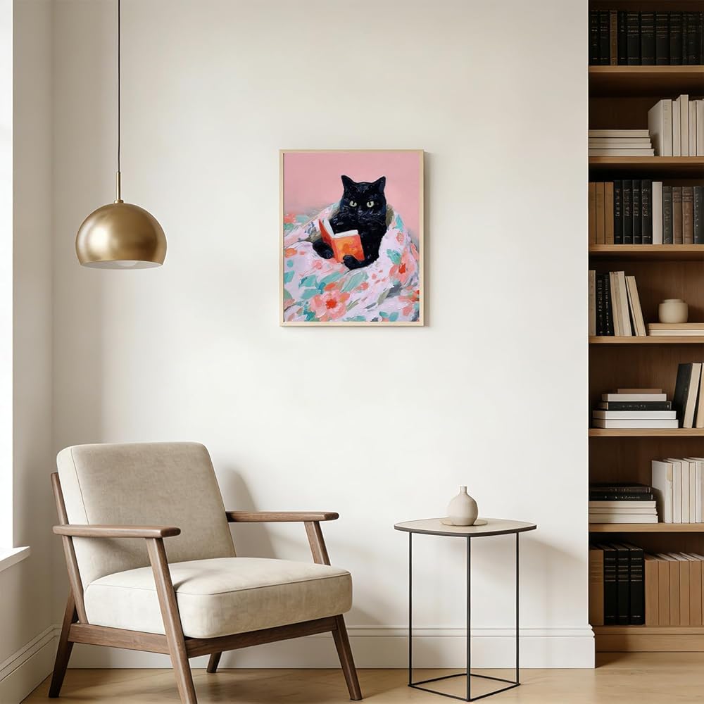 RLTXBUK Black Cat Reading Book Paint by Numbers Kit for Adults Beginners Kids 4-12, Cat and Book Lovers Gifts DIY Oil Painting Kits on Canvas Framed for Home Kids Room Apartment Decor 16x20 in