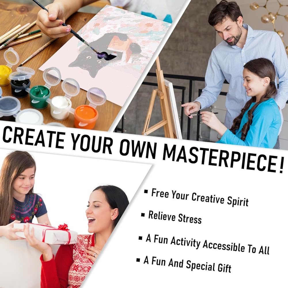 Relaxing Creative Activity: Paint by numbers encourages focus and patience while helping improve hand-eye coordination and fine motor skills, offering a calm and engaging way to unwind.