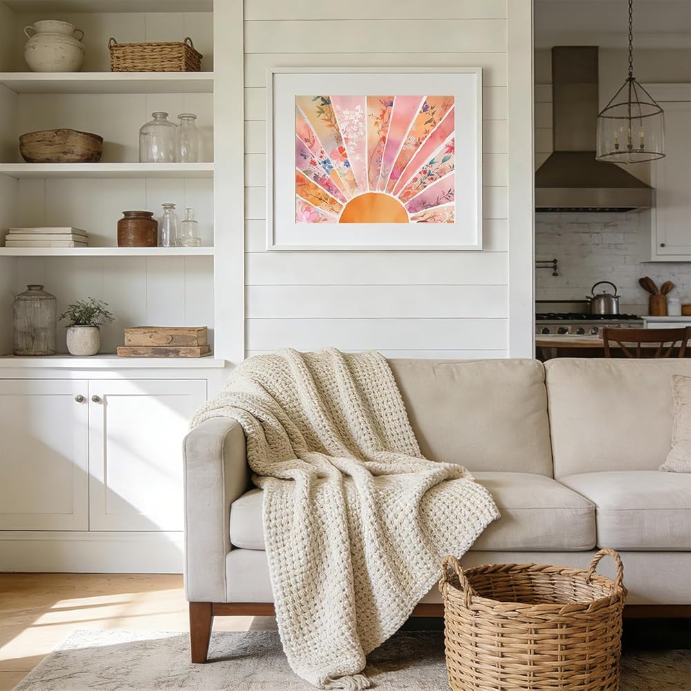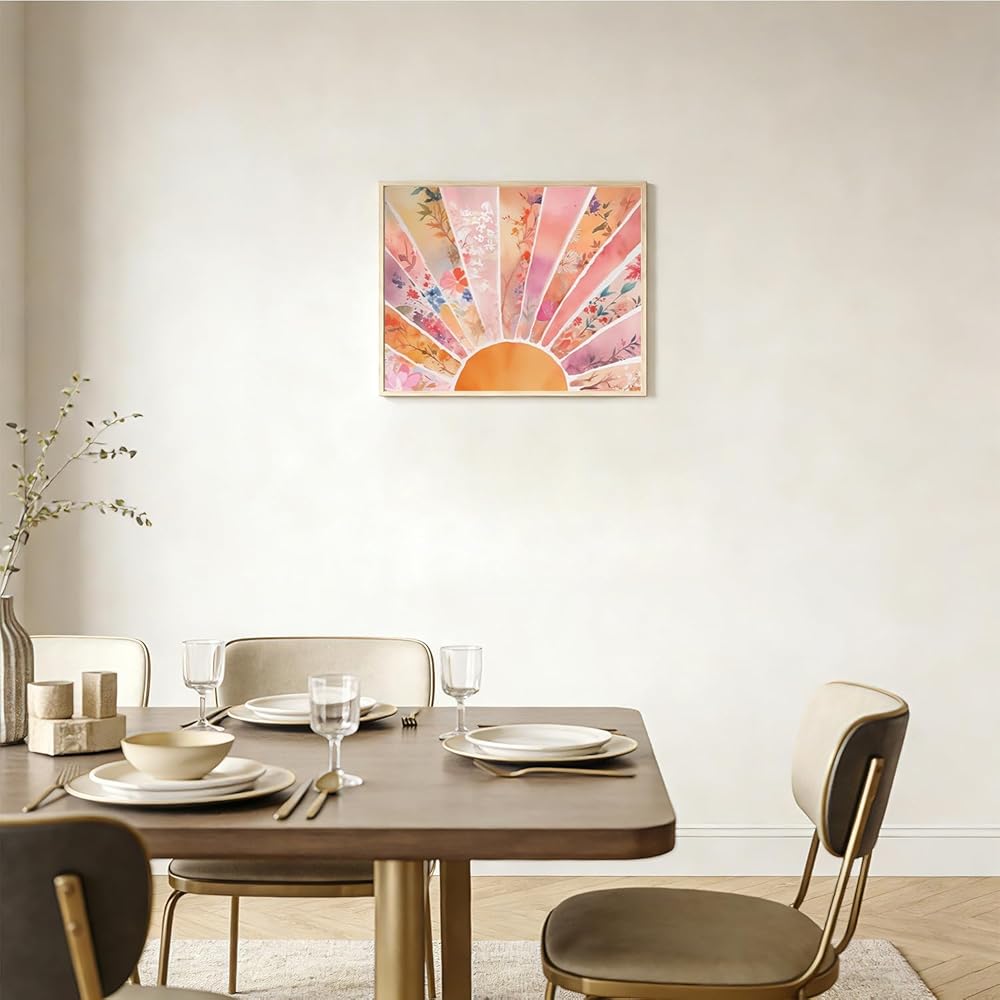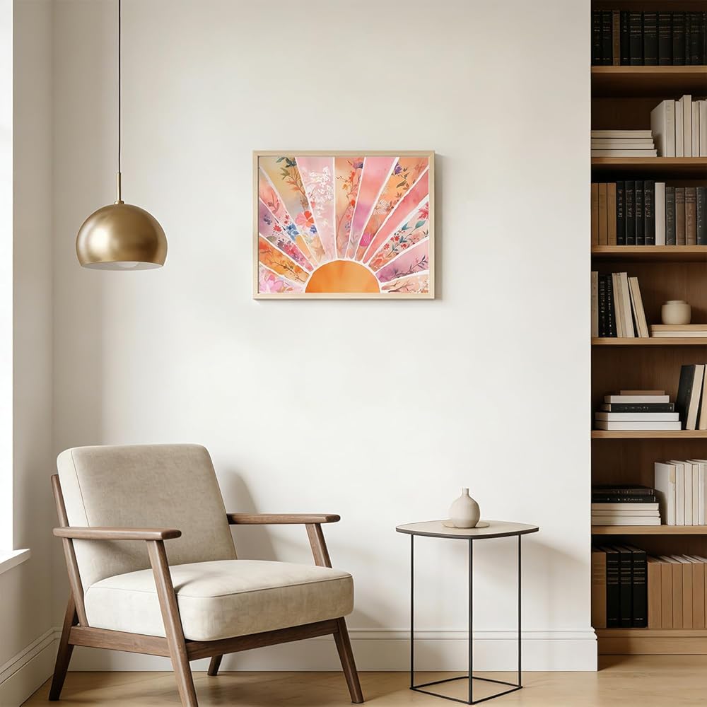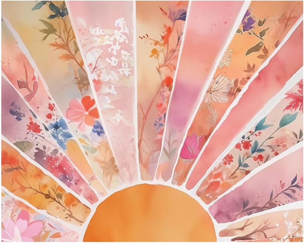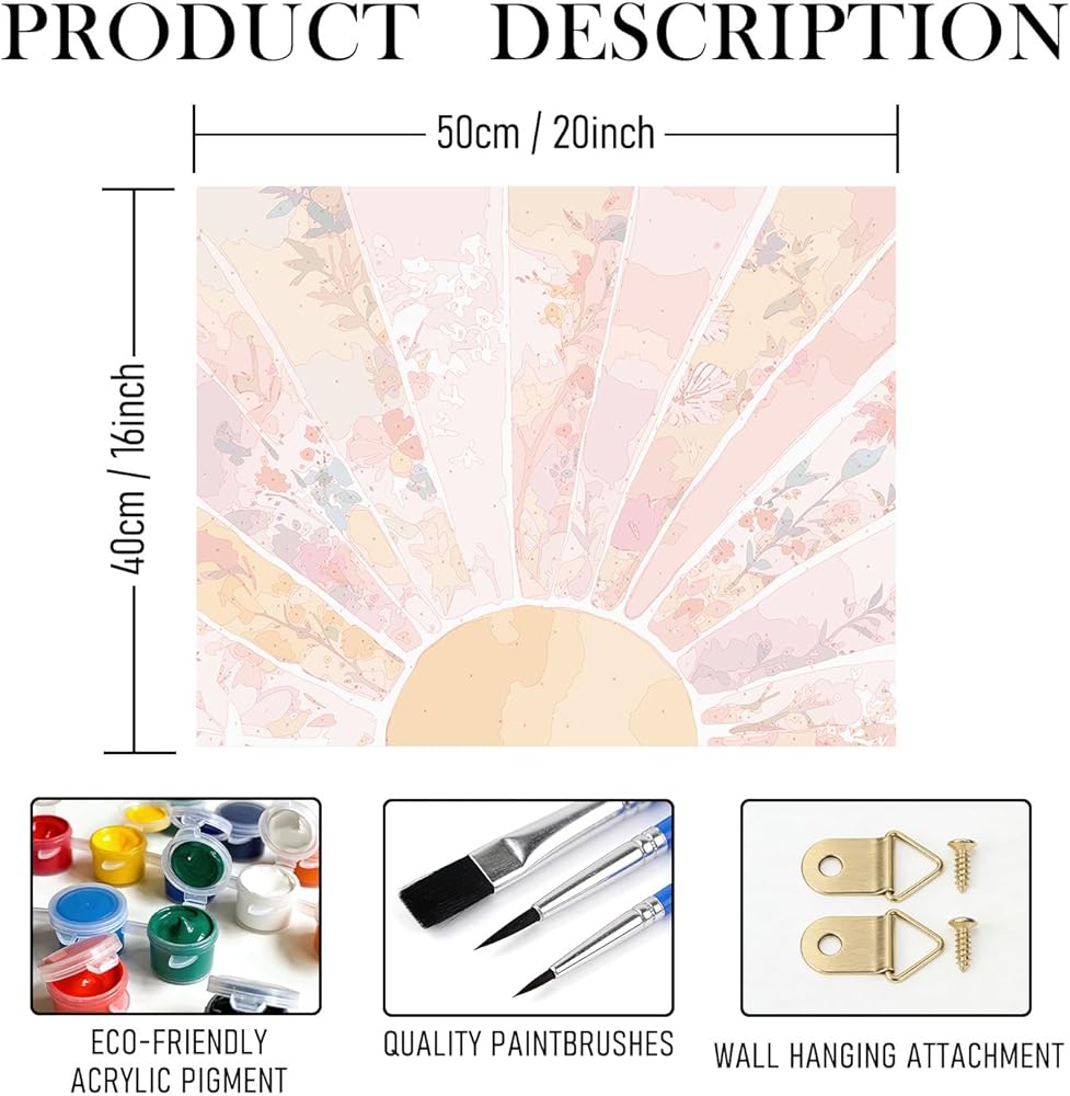 RLTXBUK Abstract Boho Floral Sun Paint by Numbers Kit for Adults Beginners Kids 4-12, Mid Century Modern Orange and Pink Sunrise DIY Oil Painting Kits on Canvas Framed for Home Decor Gifts 20x16 in