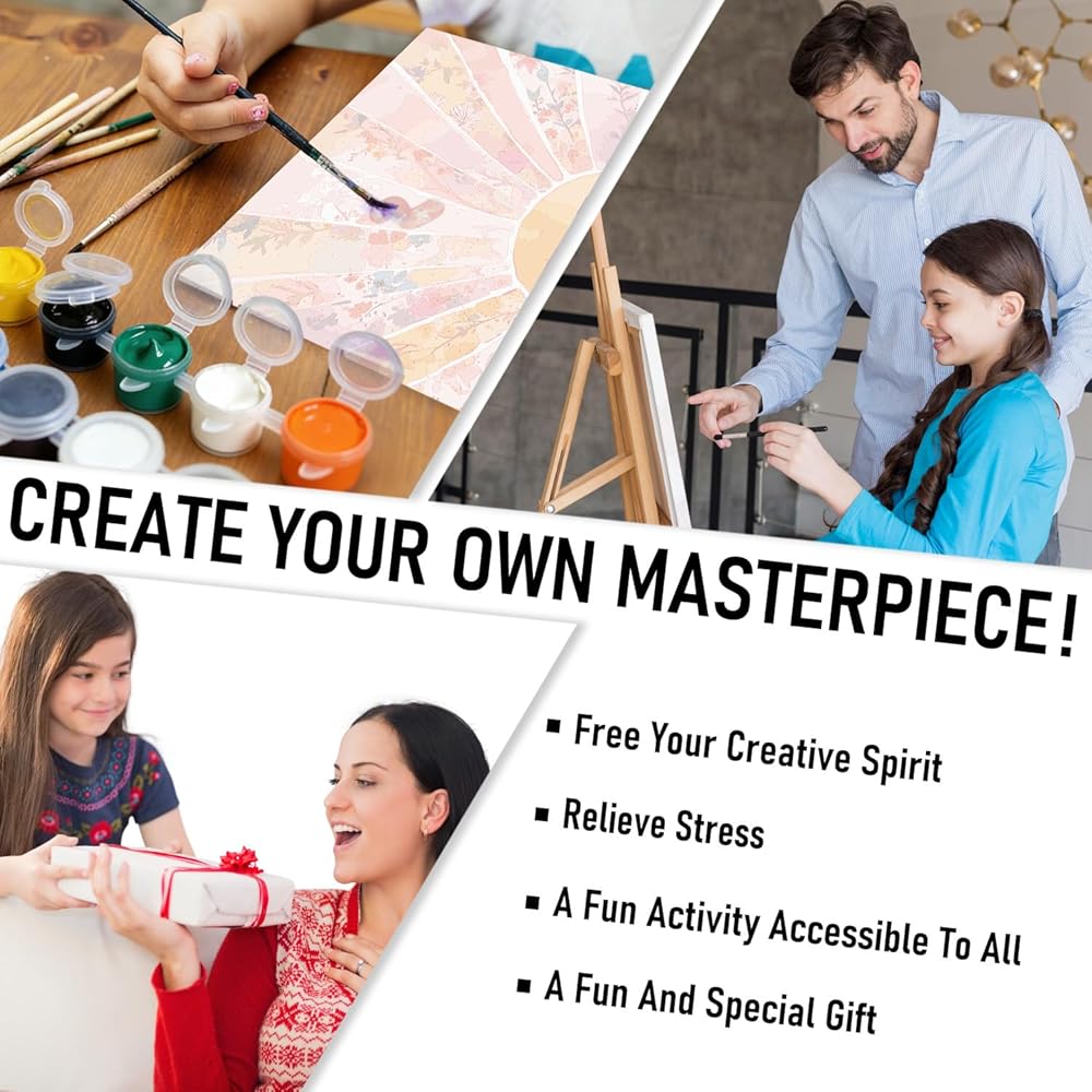 Relaxing Creative Activity: Paint by numbers encourages focus and patience while helping improve hand-eye coordination and fine motor skills, offering a calm and engaging way to unwind.