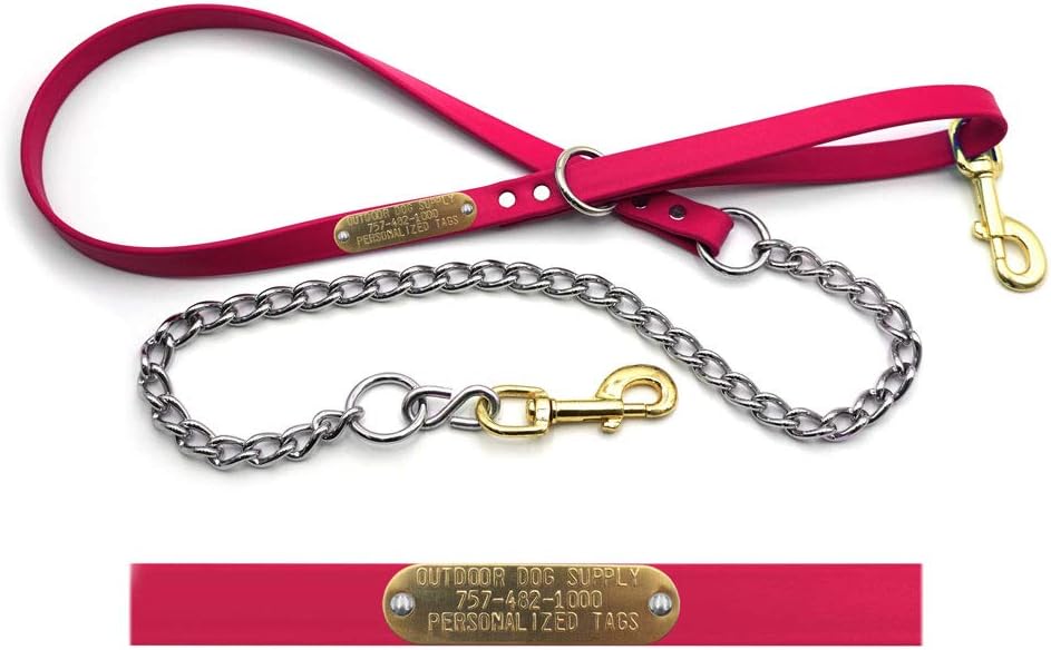 5 Ft Beta & Chain Dog Leash – Strong Leash for Active Dogs The 5 Ft Beta & Chain Dog Leash is a rugged, high-performance leash designed for active dogs and their owners. Ideal for everyday walks, training sessions, or field use, this leash blends strength and comfort using durable materials trusted by Outdoor Dog Supply customers. It features a flexible, easy-to-grip Beta handle and a stainless steel chain lead, offering durability and resistance to water and rust. The included dual snap hooks and floating O-ring allow for versatile setup options to suit your needs. A customizable brass nameplate is included, providing space for your dog's name or your contact info. This leash is an excellent choice for hunters, trainers, and outdoor enthusiasts seeking a reliable, heavy-duty lead built to handle tough environments.