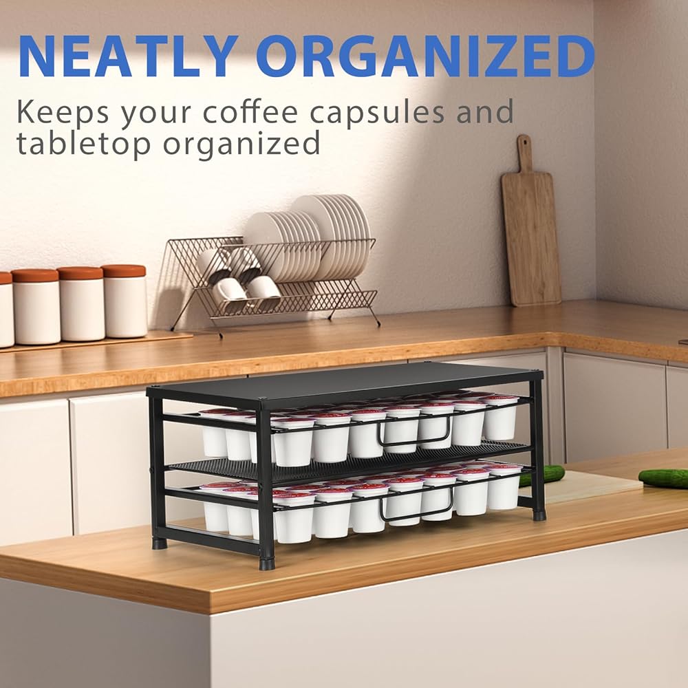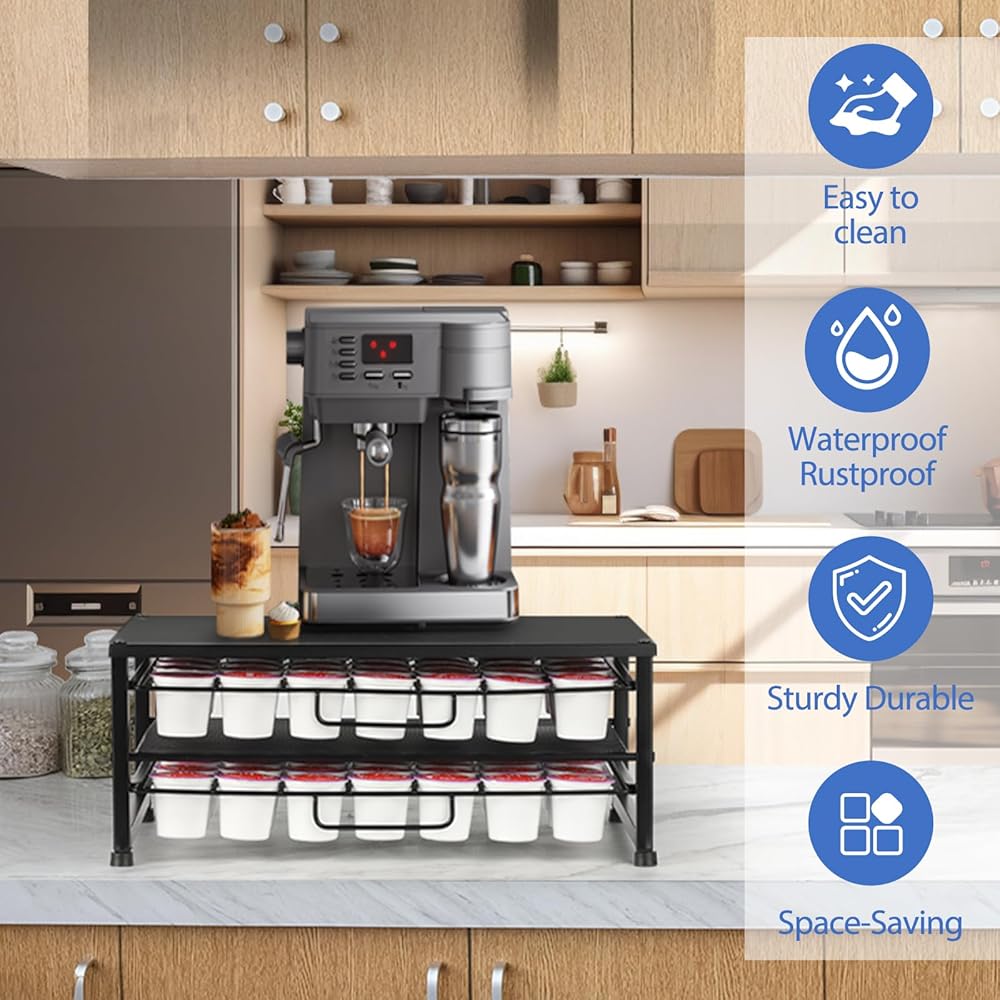 【Space-Saving】 This k cup holder Organizer fits neatly beneath your coffee maker, maximizing vertical space and giving your countertop a clean, modern look. Its minimalist design complements any kitchen or office decor, adding both elegance and functionality to your coffee corner
