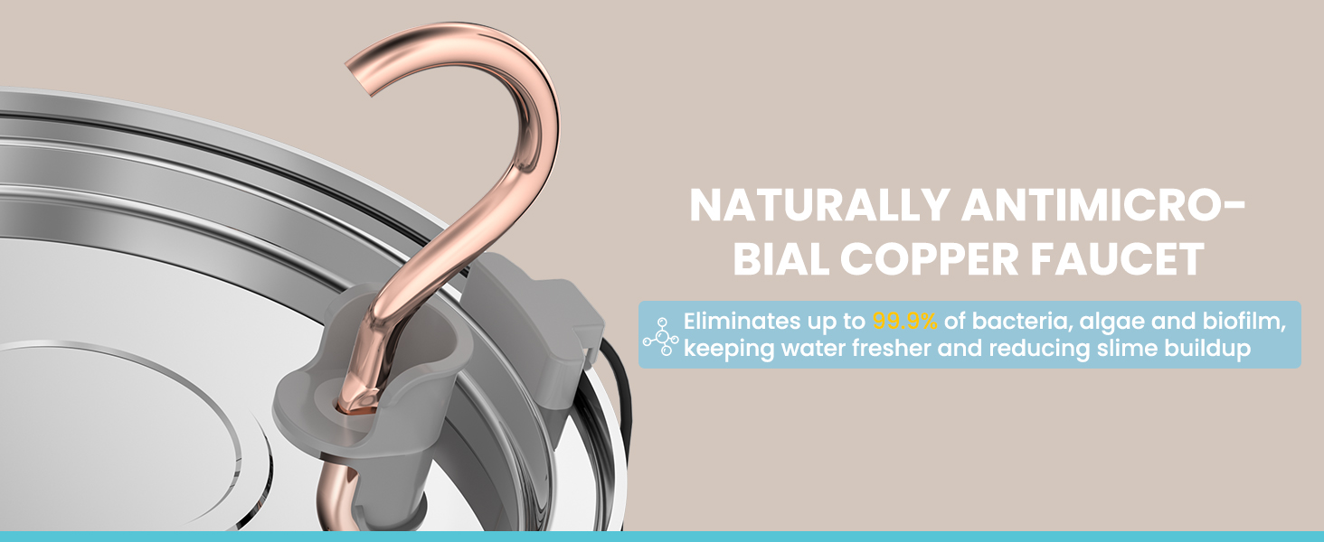 Copper Swan-neck & Waist-drum Design- Cats are naturally drawn to running water. Our elegant copper-toned faucet design mimics a real sink, enticing even the pickiest feline to stay hydrated. The unique waist-drum shaped tank isn't just for looks—it's designed for an easy, non-slip grip, making it effortless to lift and move around your home.