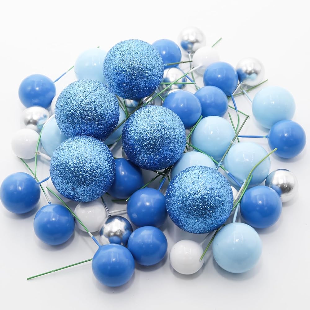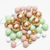 Size and Package: There are 50 pcs ball cake topper with different size, 5 pcs in 4cm/1.57" diameter, 10 pcs in 3cm/1.18" diameter, 15 pcs in 2.5cm/0.98" diameter, 20 pcs in 2cm/0.79" diameter