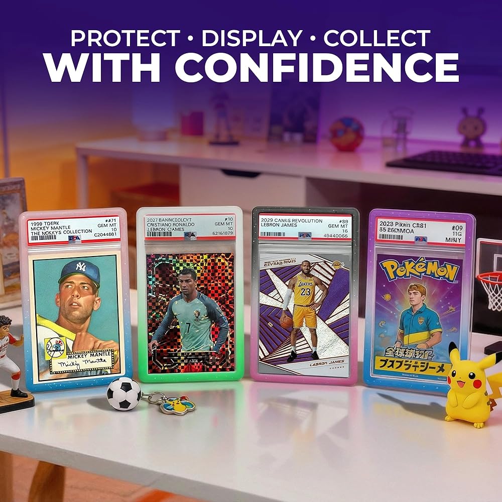 ✅ PRODUCT DESCRIPTION (A+ Content style — optimized for SEO + conversion) Upgrade the protection and display of your PSA graded cards with this premium 4-Pack TPU Slab Guard Protector Case. Designed exclusively for PSA Standard Size slabs, each bumper sleeve delivers a perfect, secure fit that enhances both protection and presentation. Made with high-grade TPU, these slab protectors offer shock absorption, scratch resistance, and crystal-clear transparency, ensuring your valuable cards stay safe from accidental drops, storage wear, and dust exposure. The Gradient Glitter Edition adds a visually striking shimmer effect that elevates the look of your slabs during display. Collectors can choose between multi-color variety packs for vibrant setups for a clean, uniform appearance. Easy to install and remove, these protectors are ideal for collectors, investors, traders, and anyone showcasing PSA slabs at home or at conventions. Whether you're protecting sports cards, Pokémon, TCG, or rare vintage PSA-graded pieces, these slab guards are engineered to keep your collection pristine and stunning.