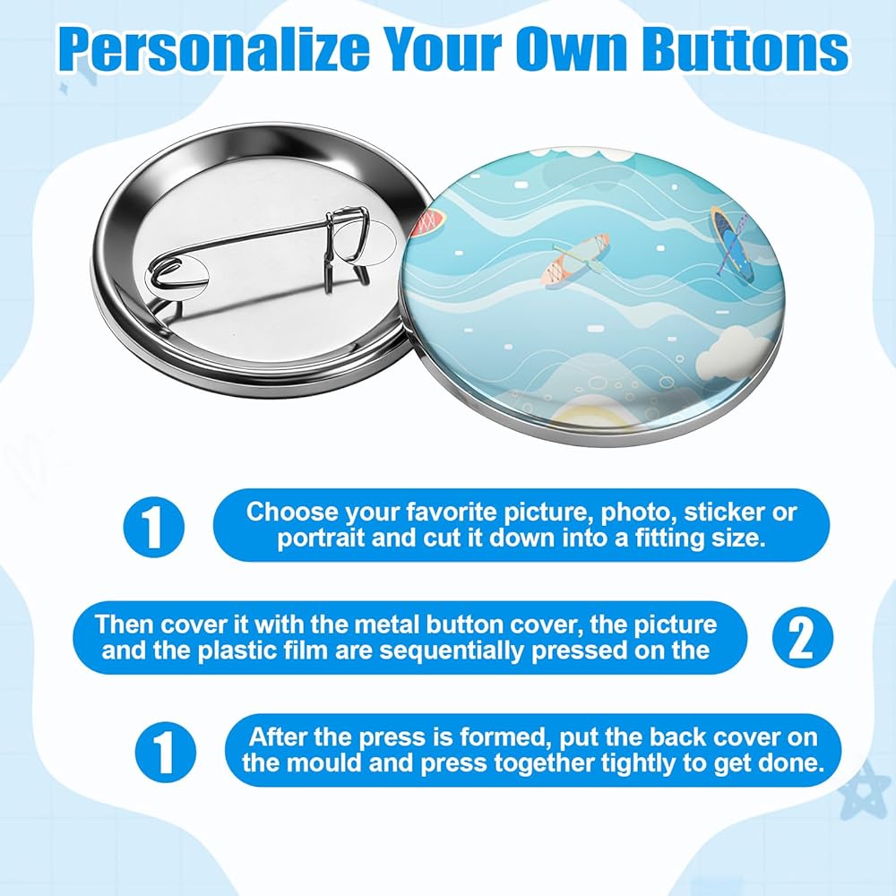 High-Quality Materials: Our button shells and back covers are made of durable tinplate, rust-resistant, drop-resistant, wear-resistant, and non-deformable. The transparent film is made of PVC, which locks in color and resists scratches, ensuring the design stays vibrant and lifelike, showcasing your unique style