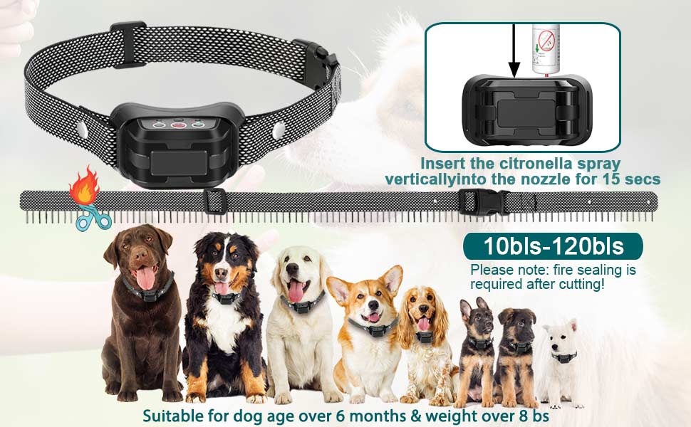 [ Suit For All Size Dogs ]: The adjustable strap(3-21inch) makes the stop barking collar fits all sizes of dogs(10-120lbs). We recommend the use of the bark collar for dogs aged 6 months and weigh over 8 lbs. Fits small, medium & large dogs. NOT suit for aggressive dogs/long nose dogs/smelling impaired dogs/long neck dogs.