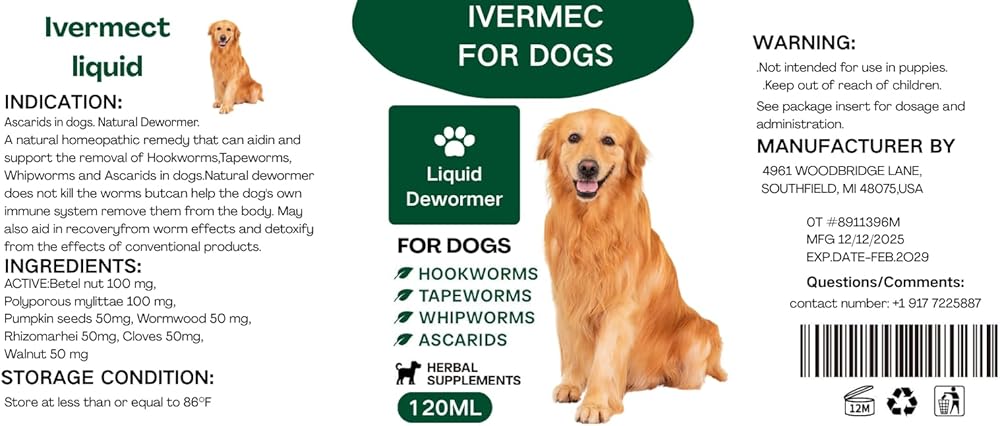 MAIN Ingredients: lvermect, Water & BHT, Broad Spectrum for All Dewormer Digestive Cleanser