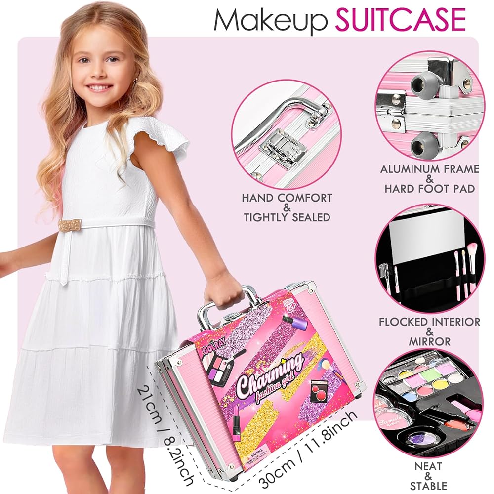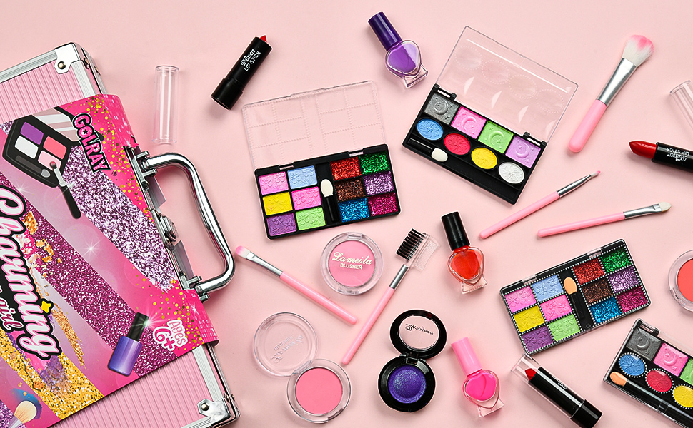 20 in 1 Makeup Kit: Golray girls makeup kit for kids 8-12 comes with 4 eyeshadow palettes, 3 lipsticks, 3 blushes, 1 glitter, 5 makeup brushes, and 1 train case. It is an excellent choice for teen girl gifts, as it includes all the essential cosmetics required for beginners to have a glowing makeup look