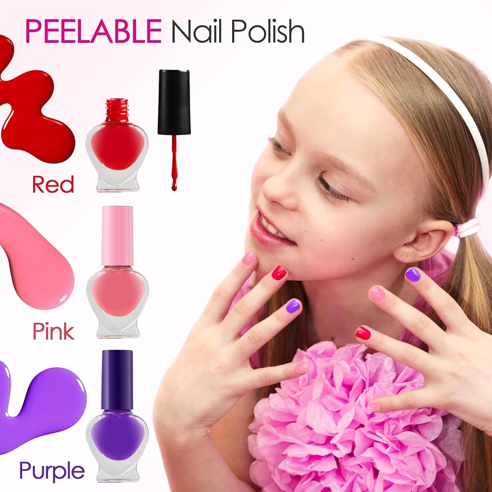Washable Makeup Set: All the cosmetics in our makeup kits for teens girls are made with cruelty-free formulas. They are washable and non-messy that can be washed out with water easily. With the property to peel off after drying out, the make up set for teen girl is easy to clean. So you can let your girls exert their creativity and imaginations all they want