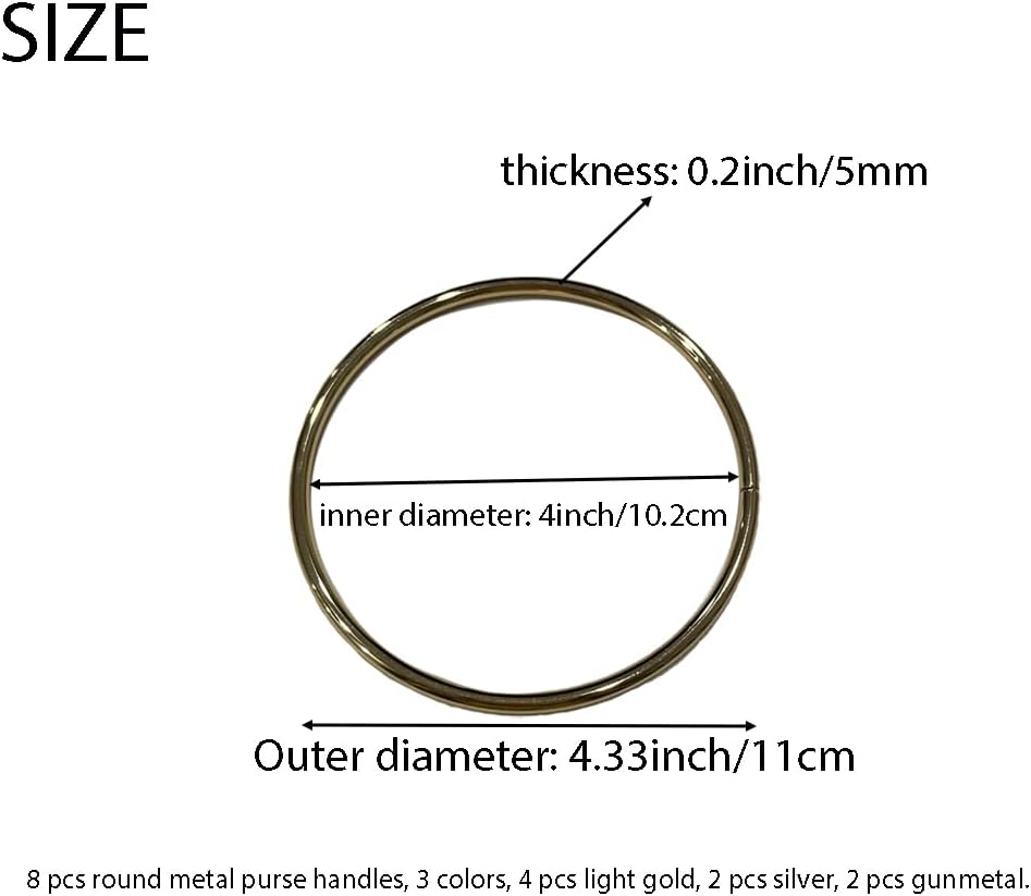 8 Pcs Metal Ring Bag Handle, 4.33 Inch Round Replacement Purse Handles for Handbag Hardware DIY Making, 3 Colors