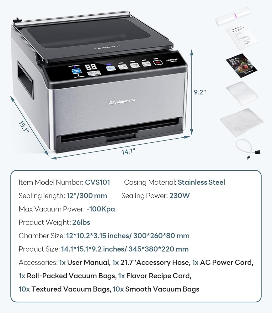 【𝐒𝐦𝐚𝐫𝐭 𝐀𝐩𝐩 & 𝐁𝐚𝐠 𝐊𝐢𝐭】Scan food with the app to identify type and nutrition info, log sealing dates automatically, and get expiration reminders—helping you reduce waste, stay organized, and plan meals smarter. Includes Textured Vacuum Bags x10, Smooth Vacuum Bags x10, and Roll-Packed Vacuum Bags x1 so you can start sealing right out of the box, and your warranty can be extended up to 15 months for extra peace of mind.