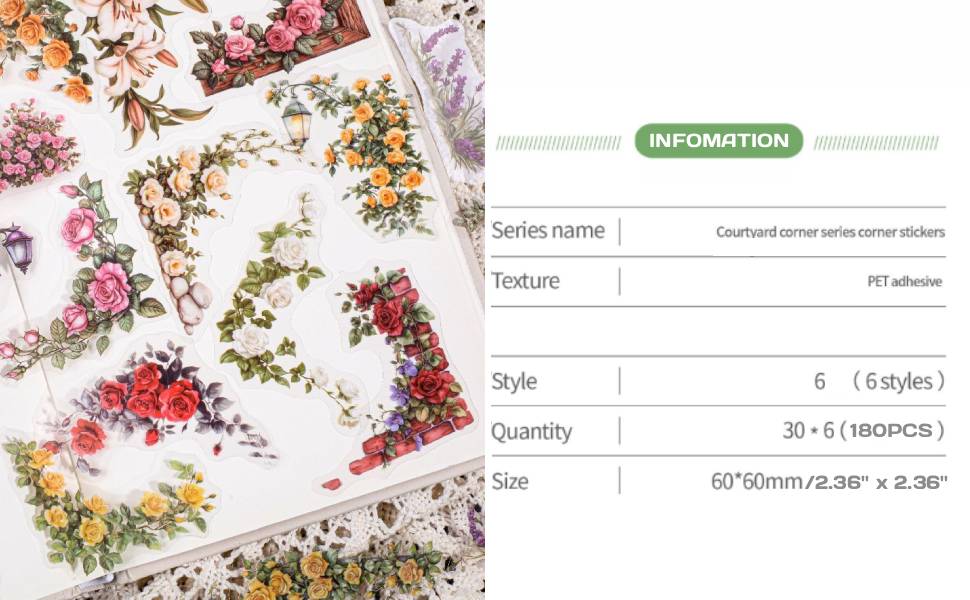 【Vintage Floral Sticker Pack】Our vintage-inspired courtyard corner stickers feature delicate floral patterns, perfect for adding a nostalgic touch to journals, scrapbooks, and DIY crafts