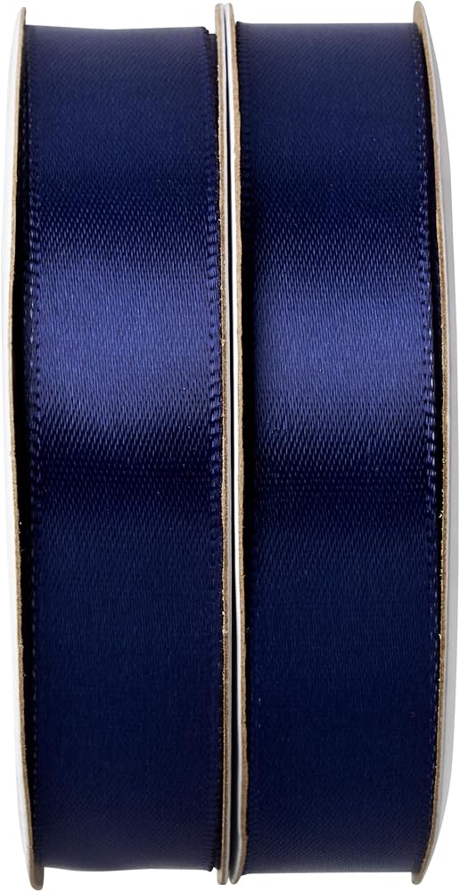 Leaders in ribbon and floral service, products, trend and design ideas, we are one of the largest manufacturers and importers of ribbon in North America. Our vast in-stock product line includes over 20,000 SKUs of woven, cut-edge, printed, extruded, and hot-stamped ribbon along with design accessories. Single face satin is a silky, luxurious style of ribbon that's perfect for seasonal, wedding, and party decor, clothing alterations and sewing projects, hair bows, gift wrapping, and more. Made from 100% high quality polyester, our ribbon is always checked for quality as well as color consistency between spools. Package includes (2) spools of 5/8" (.625") wide navy blue ribbon. Spools contain 6 yards of ribbon each for a total of 12 yards.