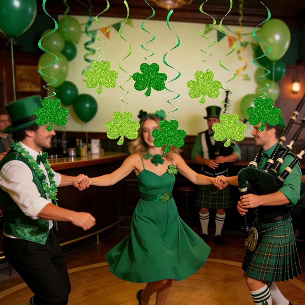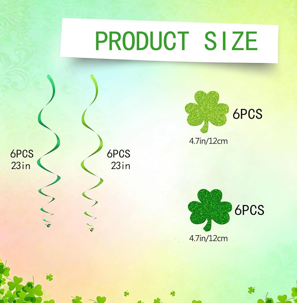 Hang Set: Includes 12 hang swirls and 12 Shamrock Cardstock for a total of 24, enough for your party hang decoration needs.