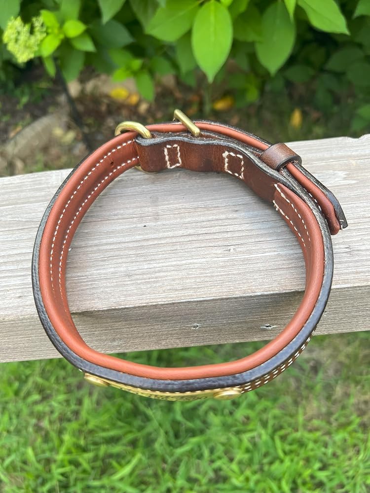 Leaders is pleased to introduce our exclusive line of leather dog collars. These collars are meticulously handcrafted by our family and are available solely through us, ensuring their uniqueness in the market. The leather used is robust yet soft, featuring an aniline finish that allows for easy oiling, waxing, and conditioning. We utilize heavy-duty solid brass hardware, hand-selecting each component for quality. Our leather is naturally tanned without the use of harsh chemicals. For optimal accuracy, measurements are taken with the collar adjusted to each hole, reflecting the interior circumference. As passionate dog enthusiasts, we found that the leather dog collars available in stores and online often lacked appeal. Therefore, we are excited to provide these exquisite, high-quality leather collars as a stylish alternative.