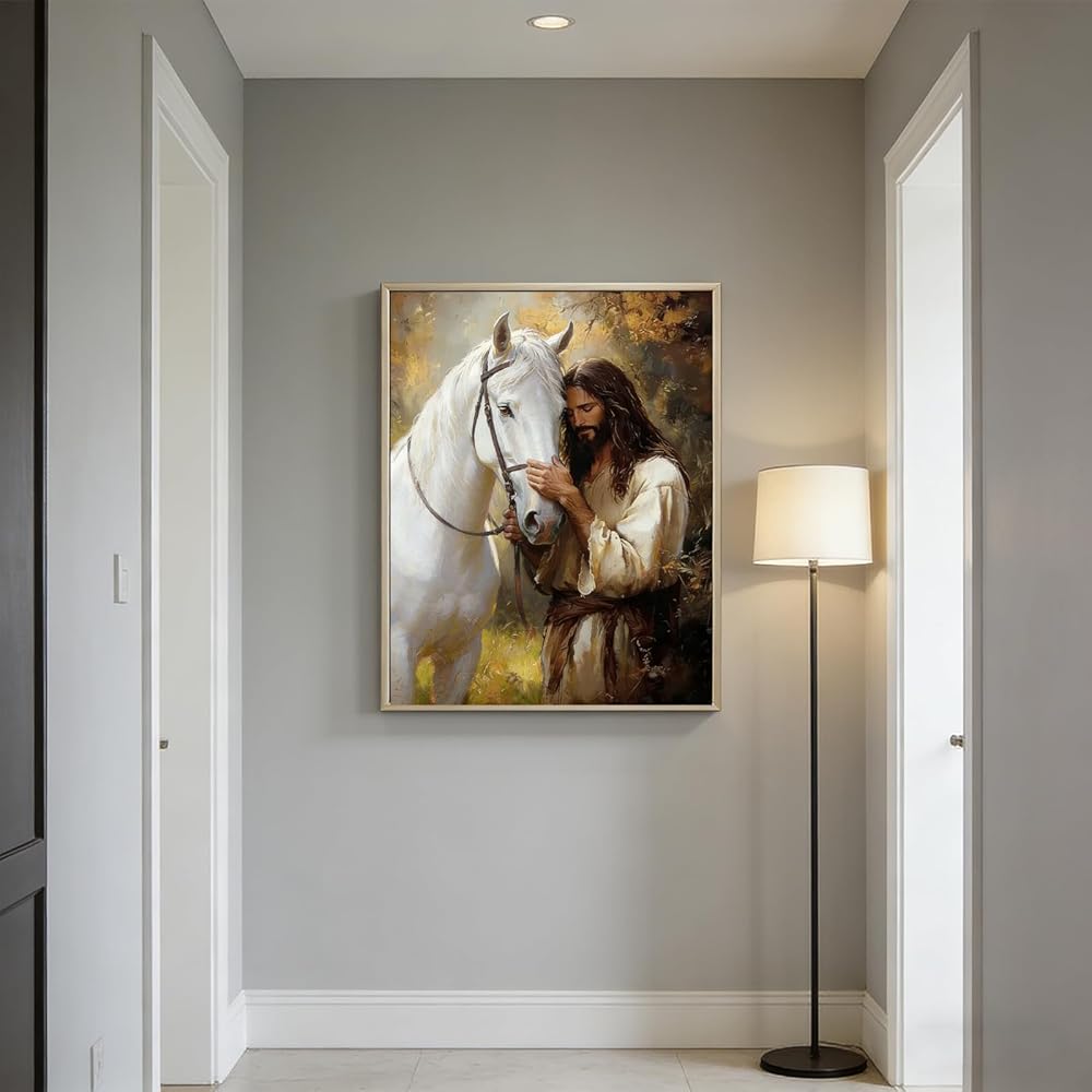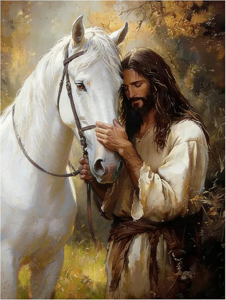 Jesus & Horse Diamond Art Painting Kit for Adults: 5D Full Drill Gem Painting with Diamond Dots. Sparkling DIY Christian Craft for Home Wall Decor, a Thoughtful Gift for Beginners,12x16 Inch