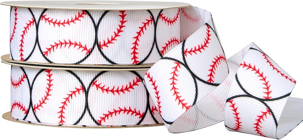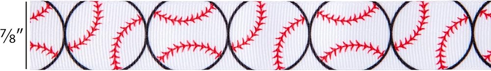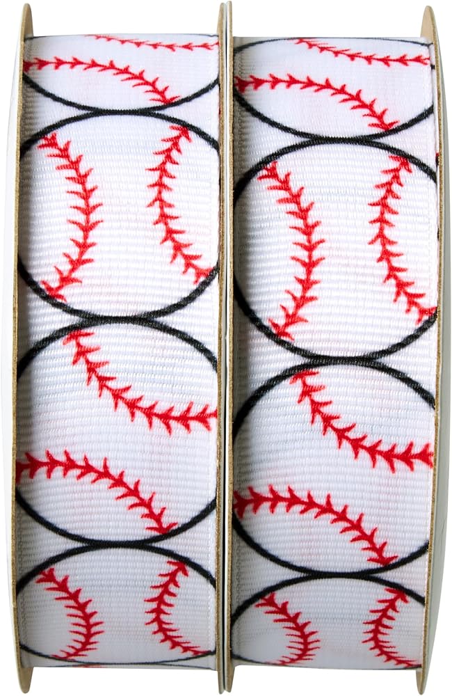 Leaders in ribbon and floral service, products, trend and design ideas, we are one of the largest manufacturers and importers of ribbon in North America. Our vast in-stock product line includes over 20,000 SKUs of woven, cut-edge, printed, extruded, and hot-stamped ribbon along with design accessories. Durable, easy to work with, and versatile enough for both indoor and outdoor use, our grosgrain ribbon is perfect for sewing projects, gift wrapping, or as a fun accent combined with event or party decor. Made from 100% high quality polyester, our ribbon is always checked for quality as well as color consistency between spools. Package includes (2) spools of 7/8" (.875") wide baseball pattern ribbon. Spools contain 3 yards of ribbon each for a total of 6 yards.