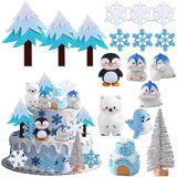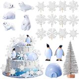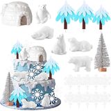 Products include:1 X Polar Bears cake decor,1 X Ice House cake decor, 4 X Penguins cake decor,1 X Seal cake decor,4 X Tree cake decor ,6 X Snowflakes cake decor. The size is shown in the figure.