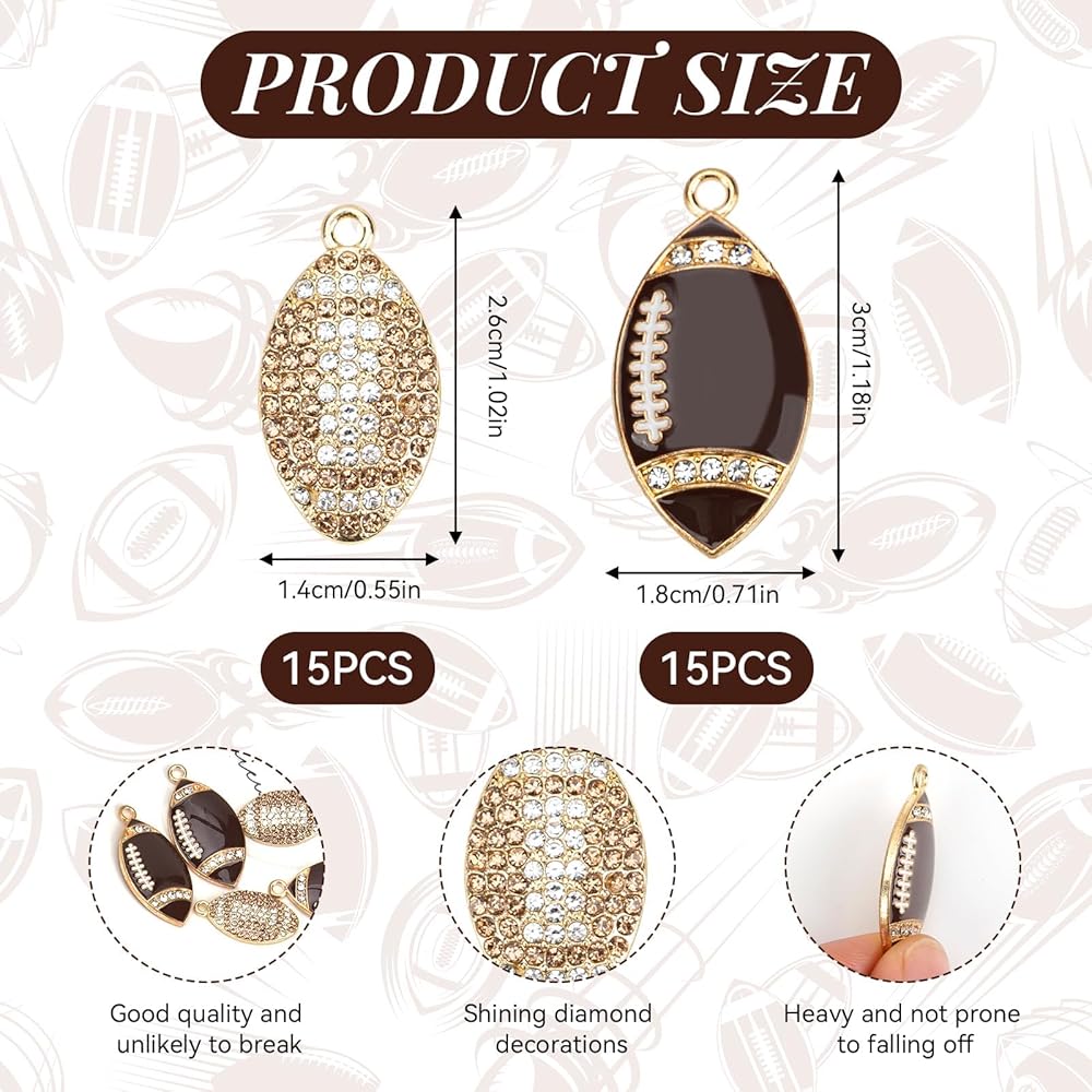 SPORTS CHARMS:You will receive 30 pieces football charms, 15pairs football rhinestone charms to meet your demand for sports-themed jewelry making and share with your family and friends
