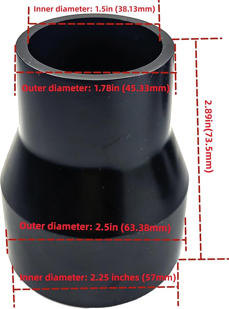 2-1/2 in. to 1-7/8 in. adapter connects 1-7/8 in. accessories to a 2-1/2 in. hose<br> 1-7/8 in. to 1-1/4 in. adapter connects 1-1/4 in. accessories to a 1-7/8 in. hose<br> 2-1/2 in. to 1-7/8 in. adapter and the 1-7/8 in. to 1/4 in. adapter can be used together to connect 1-1/4 in. accessories to a 2-1/2 in. hose