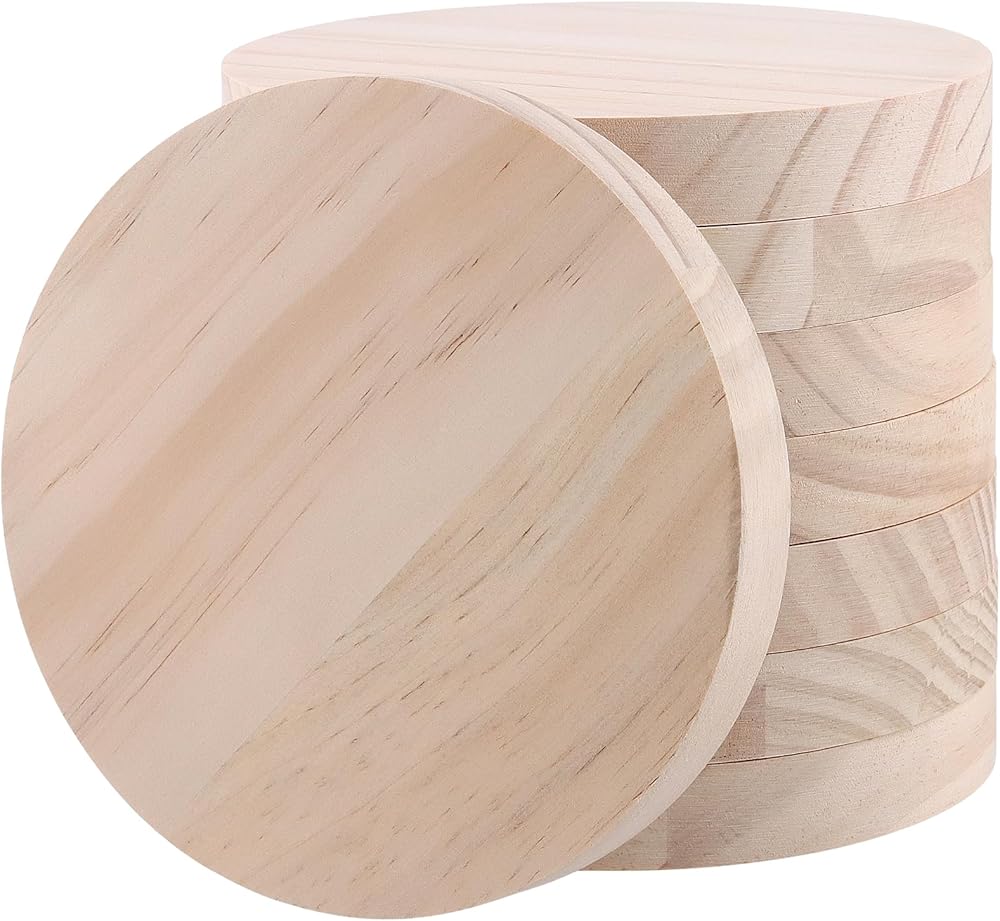 PACKAGE CONTENT - Package includes 8pcs round wood discs, each wooden circles for crafts measures 15x15x2 cm/6x6x0.78 in. Whether you are painting, staining, or woodburning, these wooden plaques provide a versatile canvas for your creativity.