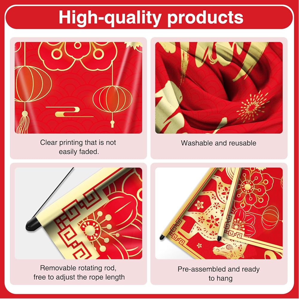 Premium quality: our tet decoration banner is made from high-quality 105D polyester fabric, which is durable, waterproof, scratch-resistant, seamless, and will not fade easily