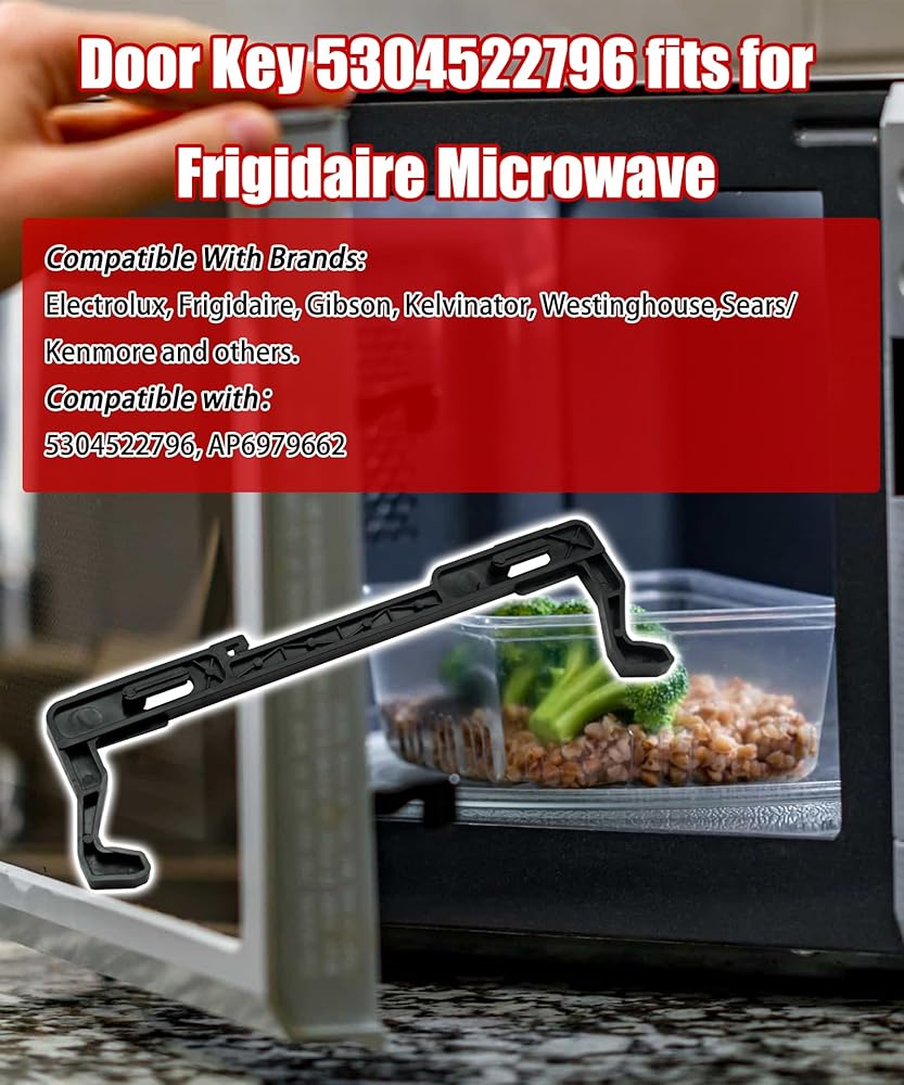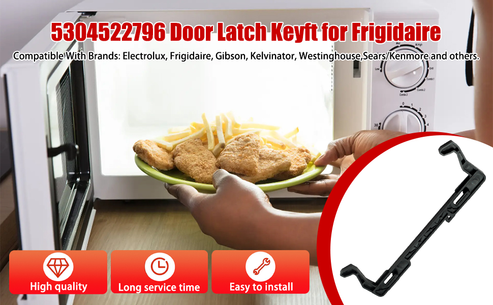 【Product size compatibility】:This Microwave Door Latch Hook Assembly is compatible with various Frigidaire,Electrolux,Gibson, Kelvinator, Westinghouse,Sears/Kenmore and others, models including FFMV1845VSA, LFMV1846VFA, etc.