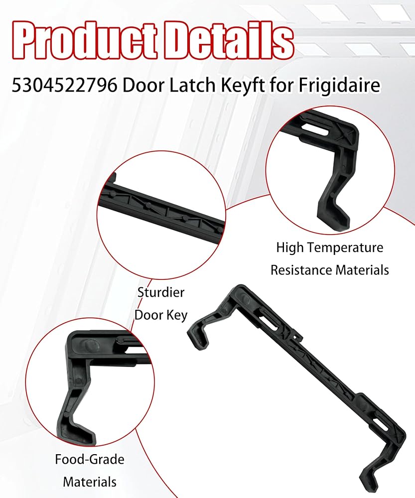 【Quick Installation】:Before replacing 5304522796 microwave door latch fits, disconnect the power to the microwave oven and prepare a screwdriver and putty knife before starting any repairs. Use a screwdriver to pry open the door cover, and then use a putty knife to separate the inner door trim in the latch area, and replace the latch, snap the interior trim back to its original position.