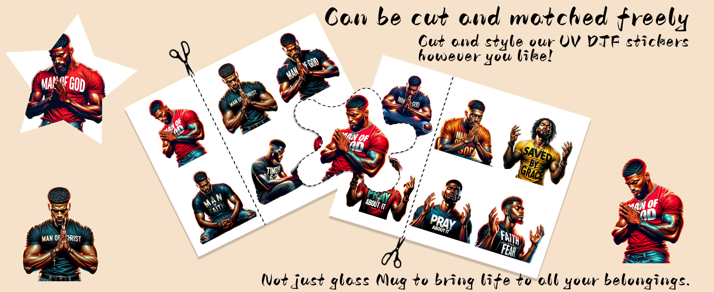 Amazing Printing Technics : 12 Sheets UV DTF cup wraps for mugs, ready to press and apply without a heat press machine or shrink wrap