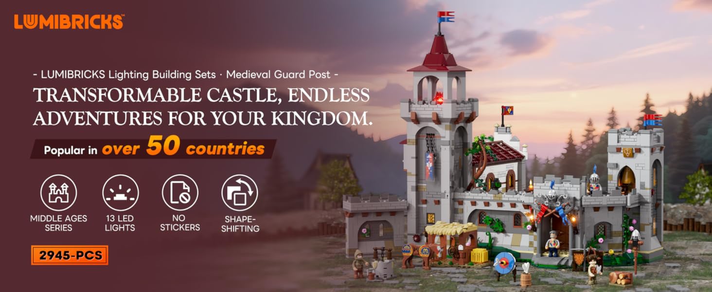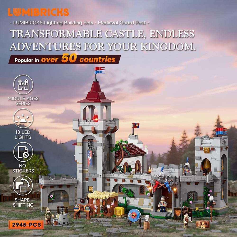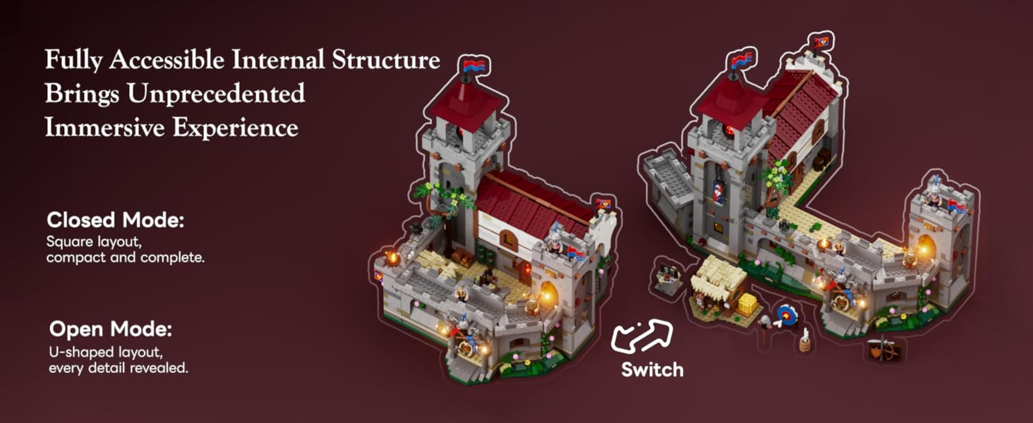 【Immersive Medieval Nightscape Ambiance】Featuring 13 built-in light points and 4 light strips, the set beautifully recreates the warm nighttime glow of a medieval barracks with rich layers of atmosphere.