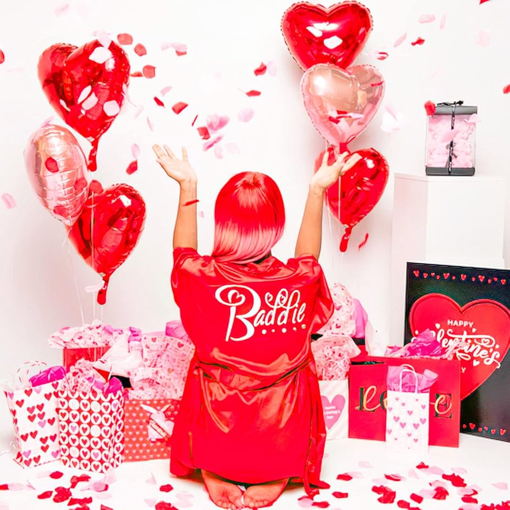 [ Romantic Party Decorations ] -- With these valentines decorations you can freely to create a romantic party for your lover. 18 inch red heart foil balloons can support helium, but please be carefully to inflate them slowly to avoid over inflation. With 1000pcs slik rose petals, there are many romantic scenes you can make, like to decorate your table, room, walkway and more.