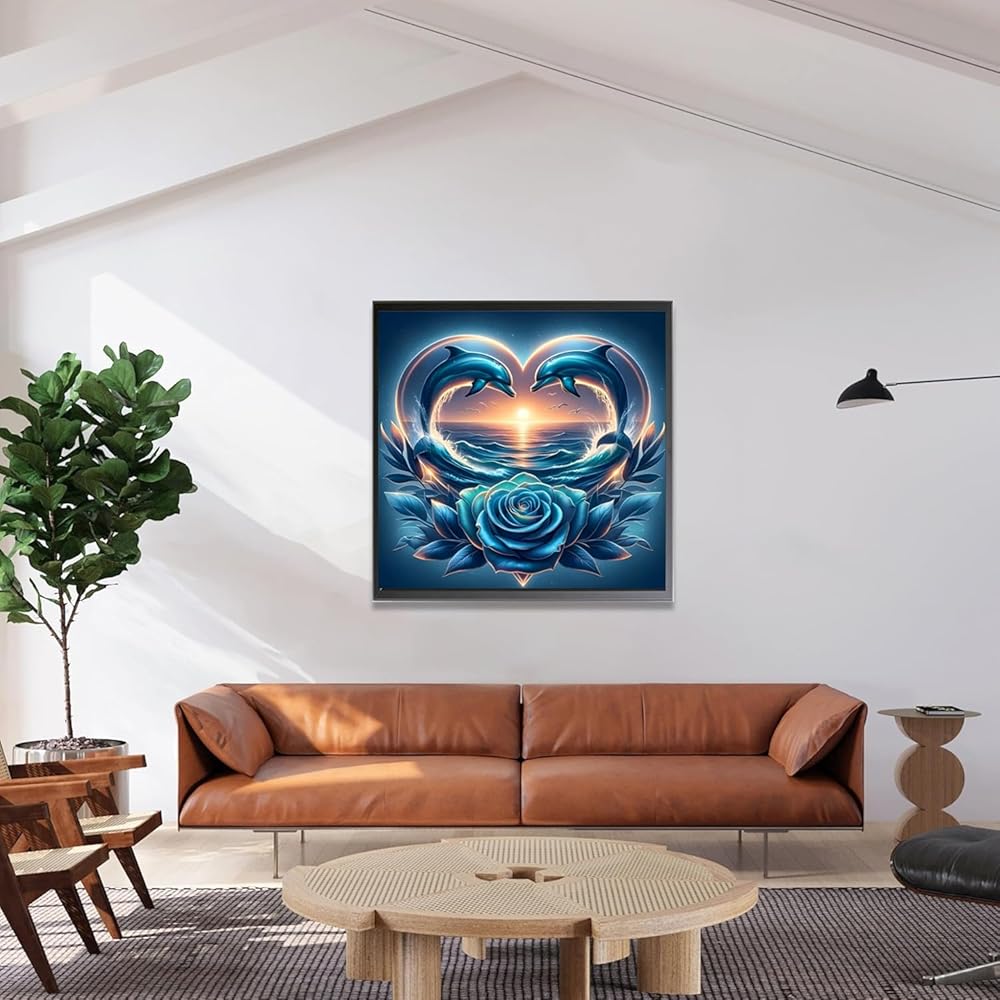 MOMDEDP Dolphin Diamond Art Kits for Adults,DIY 5D Blue RoseDiamond Painting Kits for Beginners, Round Full Drill Diamond Dots Paintings,Diamonds Pictures Gem Art Crafts Home Decor 12x12inch