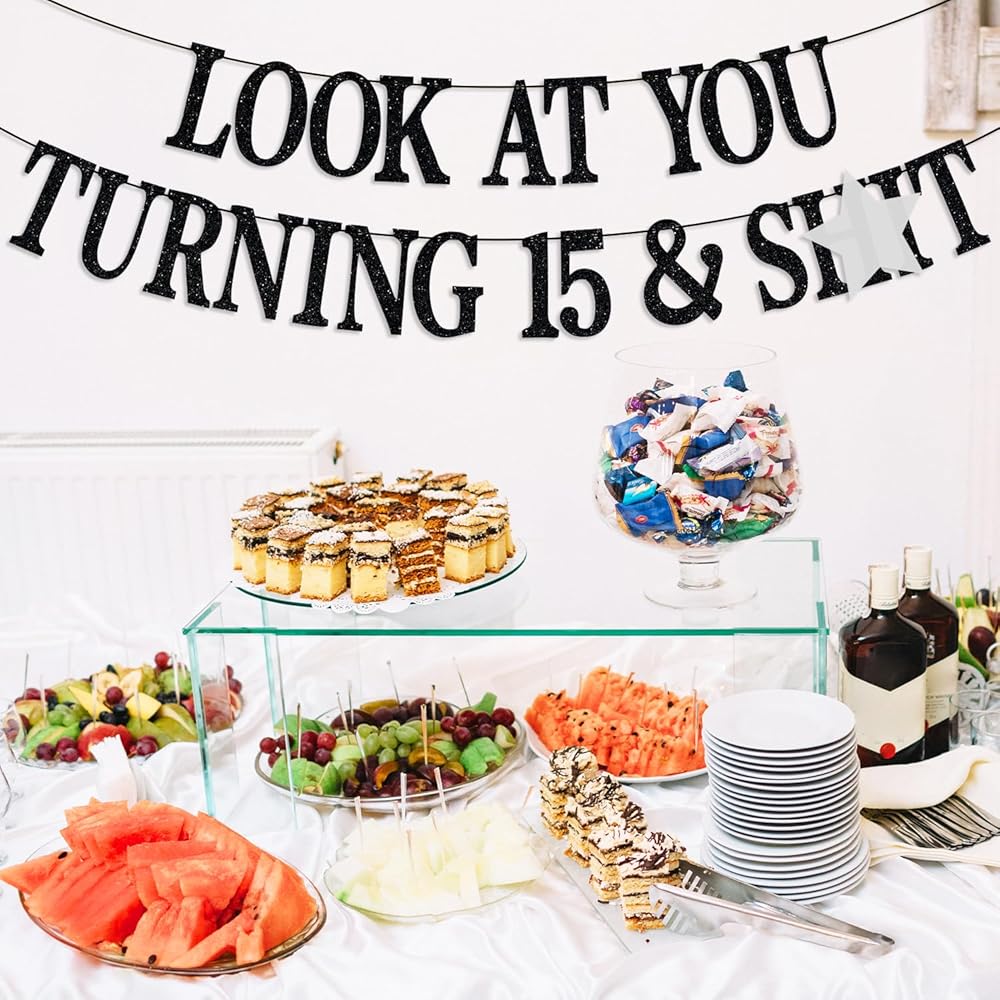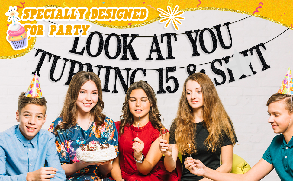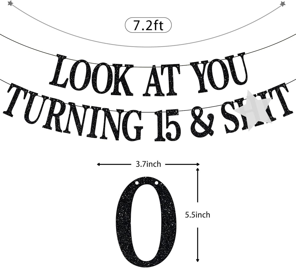 Package Contents: 1 black glitter banner(Look at You Turning 15 and Sh*t), which will be such a hit at your upcoming 15 years old birthday celebration.