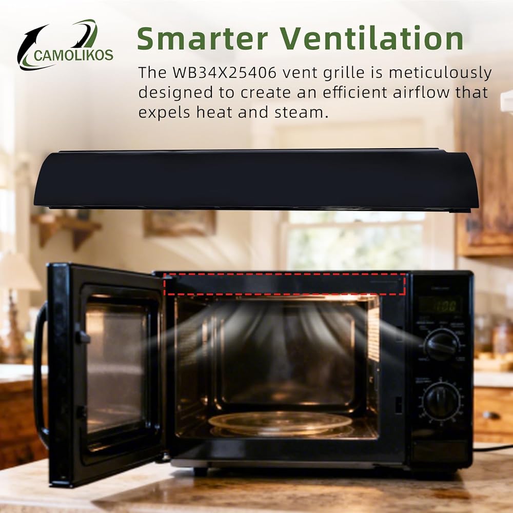 Perfect Fit: Direct replacement part WB34X25406 Microwave Vent Grille is engineered to exact specifications for a perfect fit for GE models 4465386, AP6040821, PS11774030, and EAP11774030, ensuring seamless integration and enhanced aesthetics.