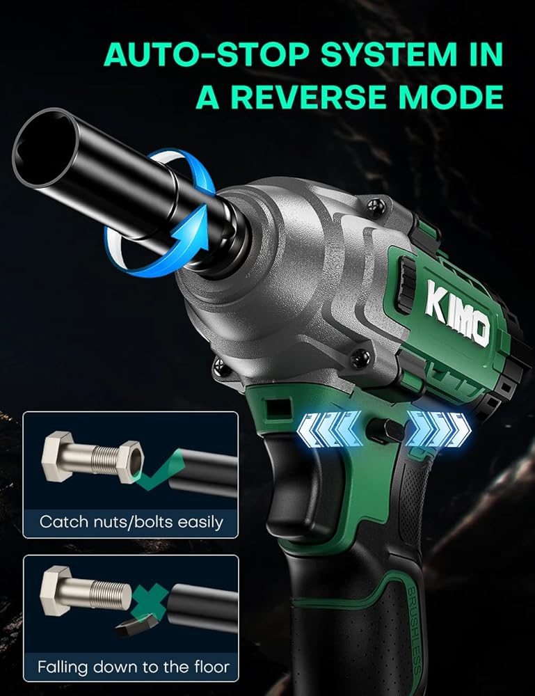 【𝐋𝐢𝐠𝐡𝐭𝐰𝐞𝐢𝐠𝐡𝐭 & 𝐄𝐫𝐠𝐨𝐧𝐨𝐦𝐢𝐜】KIMO cordless impact wrench 1/2 inch weighs only 3.9 lbs, friendly for beginners and arthritis users. Besides, it is designed with ergonomics and an insulated soft-grip handle. So you won't feel fatigued even after using the compact 1/2 impact gun for a long time.