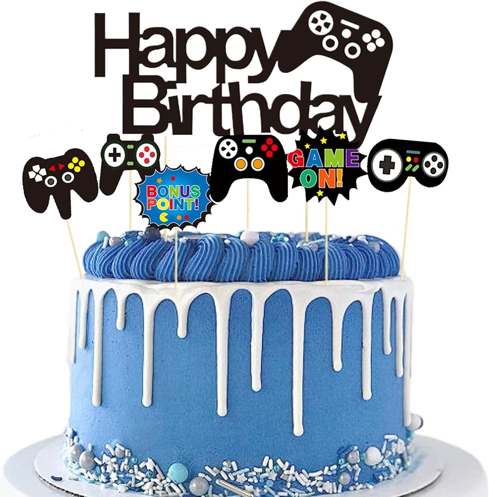 13 Pcs Video Game Cake Topper,Game Controller Happy Birthday Cake Topper, Black Gamepad Cake Topper for Game Themed Parties Birthday Party Cake Toppers