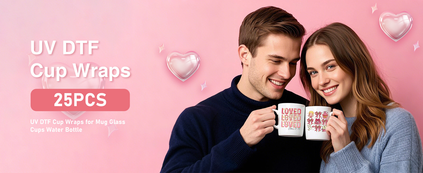Reliable Quality: Made with high-quality UV DTF film, these wraps are waterproof and scratch-resistant, keeping your designs looking fresh and vibrant. They hold up through multiple washes, so your Valentine's décor lasts throughout the season