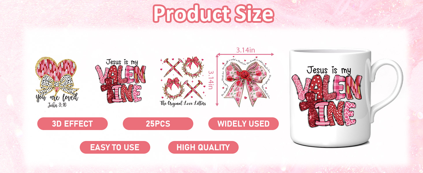 Complete Set: This set includes 25 Valentine's Day UV DTF cup wraps, perfect for DIY projects or festive decorations. These wraps help personalize your drinkware with romantic designs, adding a fun and loving touch to your Valentine's celebration