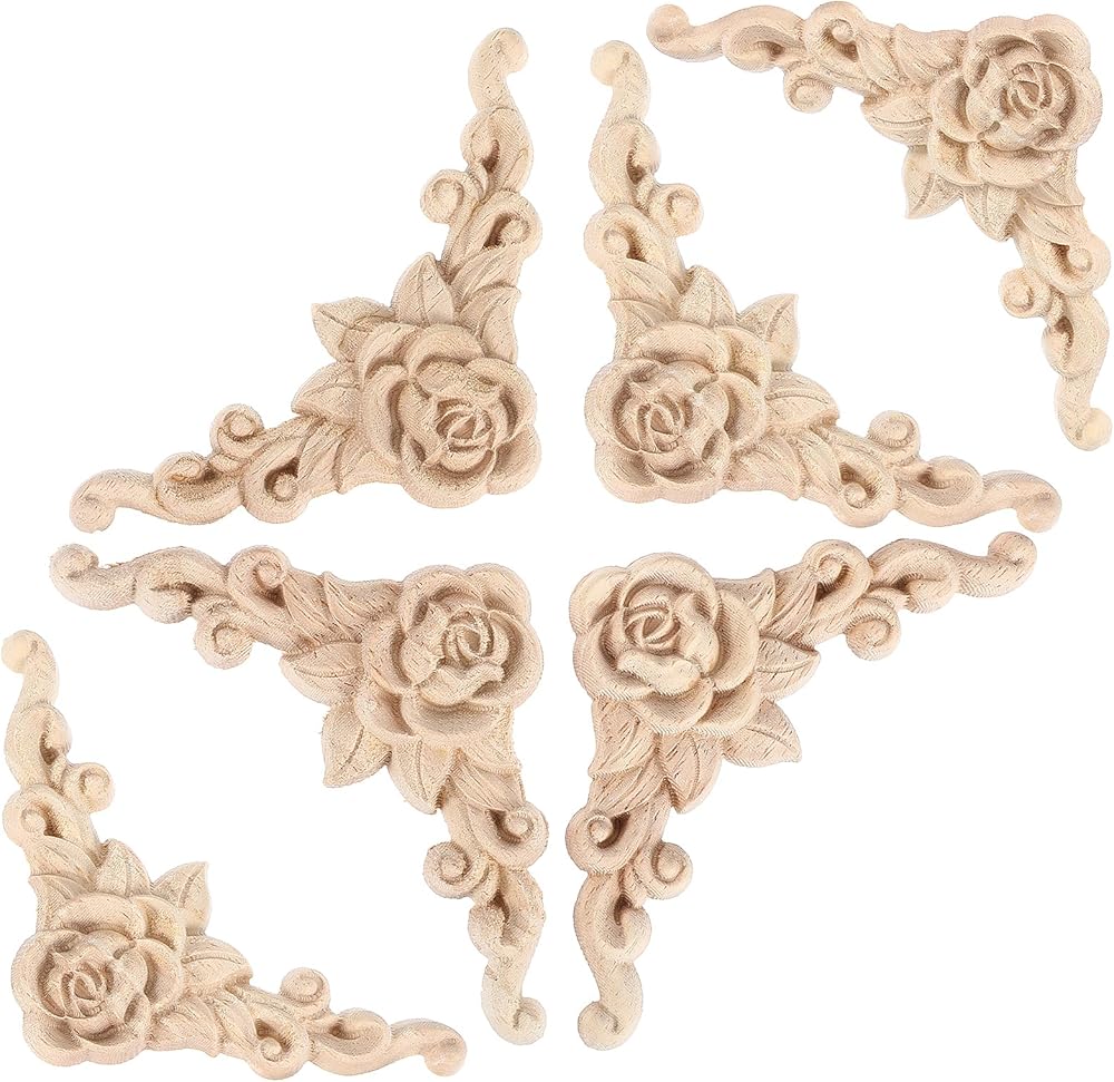 TIESOME 6Pcs Wood Appliques and Onlays Wood Appliques for Furniture, 3.15x3.15 Inch Handmade DIY Carved Onlay Unpainted Corner Decoration for Bed Door Cabinet Wardrobe Furniture
