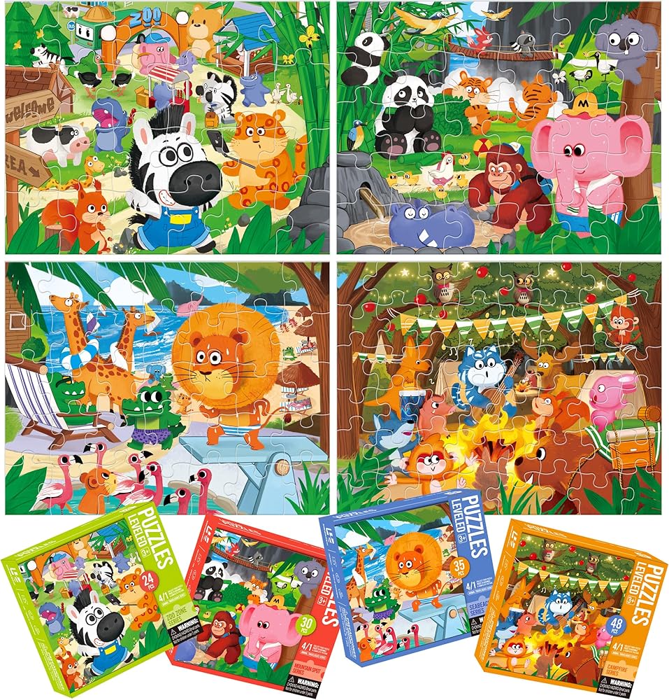 【4 PROGRESSIVE LEVELS】: Start with 24-piece puzzles (ages 3+) featuring bold vehicle outlines, then level up to 48 pieces! Each set teaches kids about firefighters, police officers, and other heroes – sparking curiosity about community roles while boosting problem-solving skills.