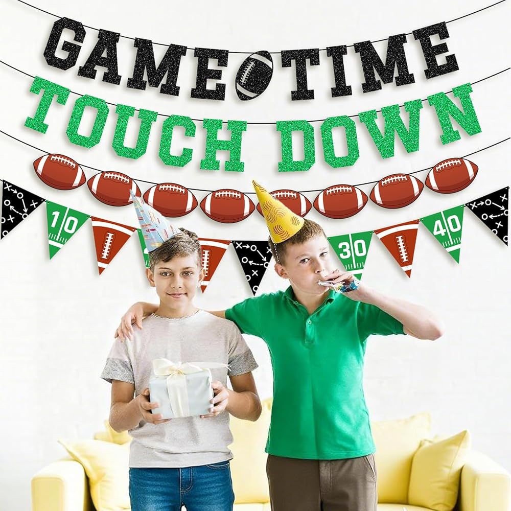 Pre-Strung & Ready Our "Game Time Touch Down" banner arrives pre-strung on a 9.8 ft strand—no DIY needed. Simply hang it instantly for birthdays, watch parties, or any football-themed event.