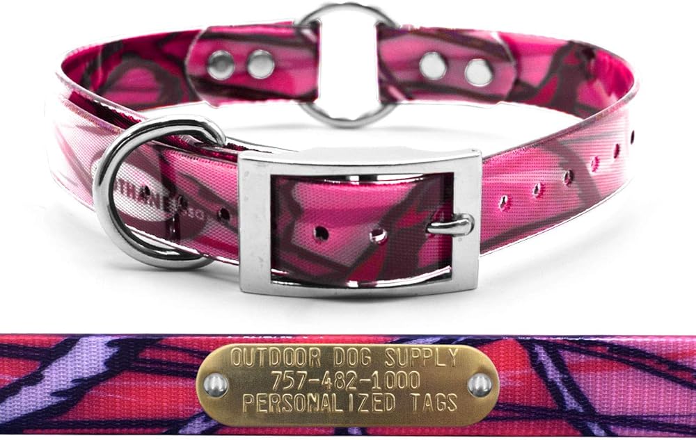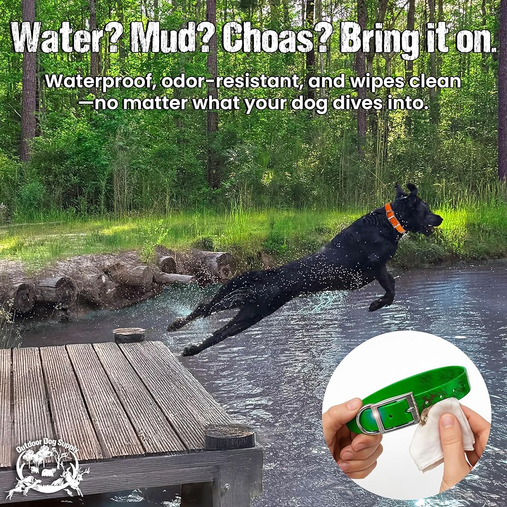 The 1" Premium Glow Tuff Dog Collar is designed for durability and everyday use, making it suitable for both outdoor activities and daily wear. Made from poly-coated nylon, this collar is waterproof, odor-resistant, and easy to clean. It features a nickel-plated D-ring near the buckle for secure leash attachment and a central O-ring for added versatility. Key Features: Waterproof & Odor-Resistant – Helps prevent odor buildup and is easy to wipe clean. Durable & Comfortable – Made from strong yet flexible materials for a secure fit. Nickel-Plated Hardware – Includes a D-ring and central O-ring for multiple lead attachment options (may corrode with prolonged exposure to chlorine or salt water). Easy to Clean – Simple wipe-down maintenance. Adjustable Fit – Tight hole spacing ensures a precise fit. Made in the USA – Crafted with attention to quality and durability. Sizing Options: 18-inch Collar – Fits neck sizes 11 to 18 inches. 21-inch Collar – Fits neck sizes 14 to 21 inches. Note: Colors may vary slightly due to screen settings. Nickel-plated hardware may corrode if exposed to chlorine or salt water for extended periods. This collar is designed for active and working dogs, offering a balance of durability, comfort, and functionality.