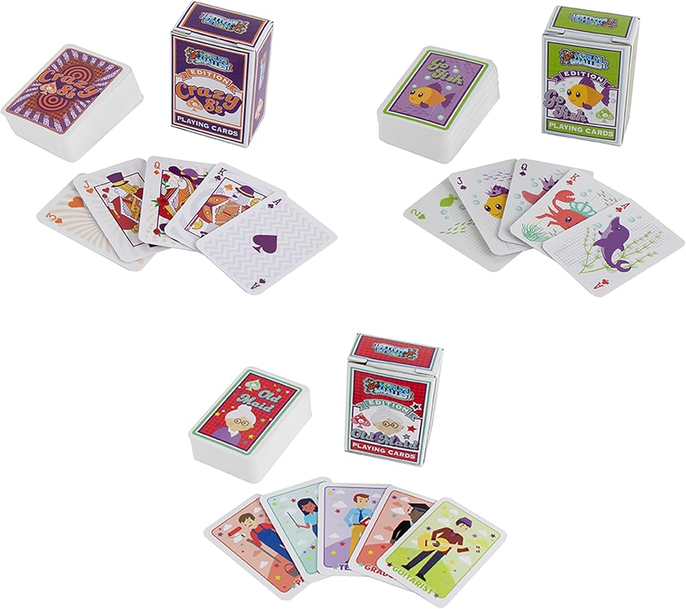 This bundle includes 3 mini card games - Crazy 8's - Old Maid - Go Fish.